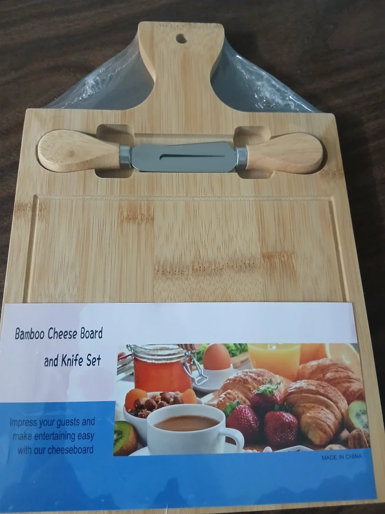 I'm selling brand new bamboo cheese board and knife set! It's still in its original packaging. Perfect for impressing your guests and making entertaining easy with a cheeseboard. It includes the board and a cheese knife. I HAVE 2. $15 EACH.