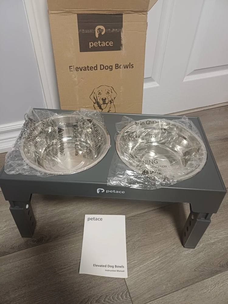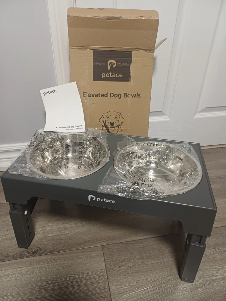 Selling a brand new set of Petace elevated dog bowls, with 2 stainless steel dog food bowls.