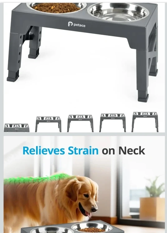 Adjustable in 5 different heights for small, medium and large dogs. They come in the original box with the instruction manual. Grey in color. Perfect for your furry friend!