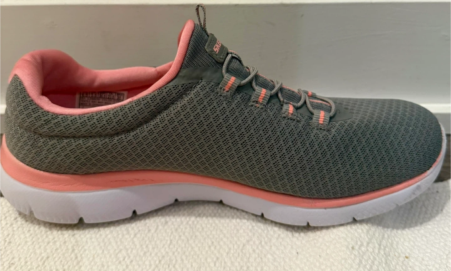 Selling a pair of Skechers Summits in a women's size 6.5 US. They're in great shape and super comfy! The colour is grey/pink (GYPK) and the upper is made of textile and man-made materials. I can bring the sneakers for you to test first. No purchasing commitments needed!