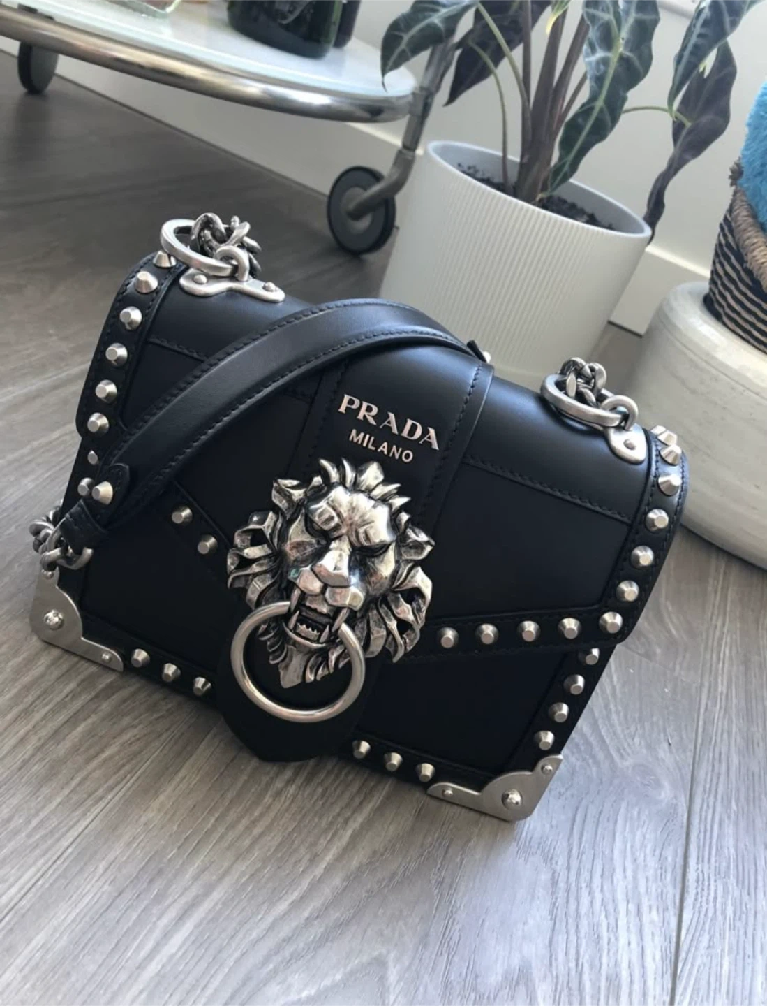Prada Black Cahier Saffiano Animalier Shoulder Bag