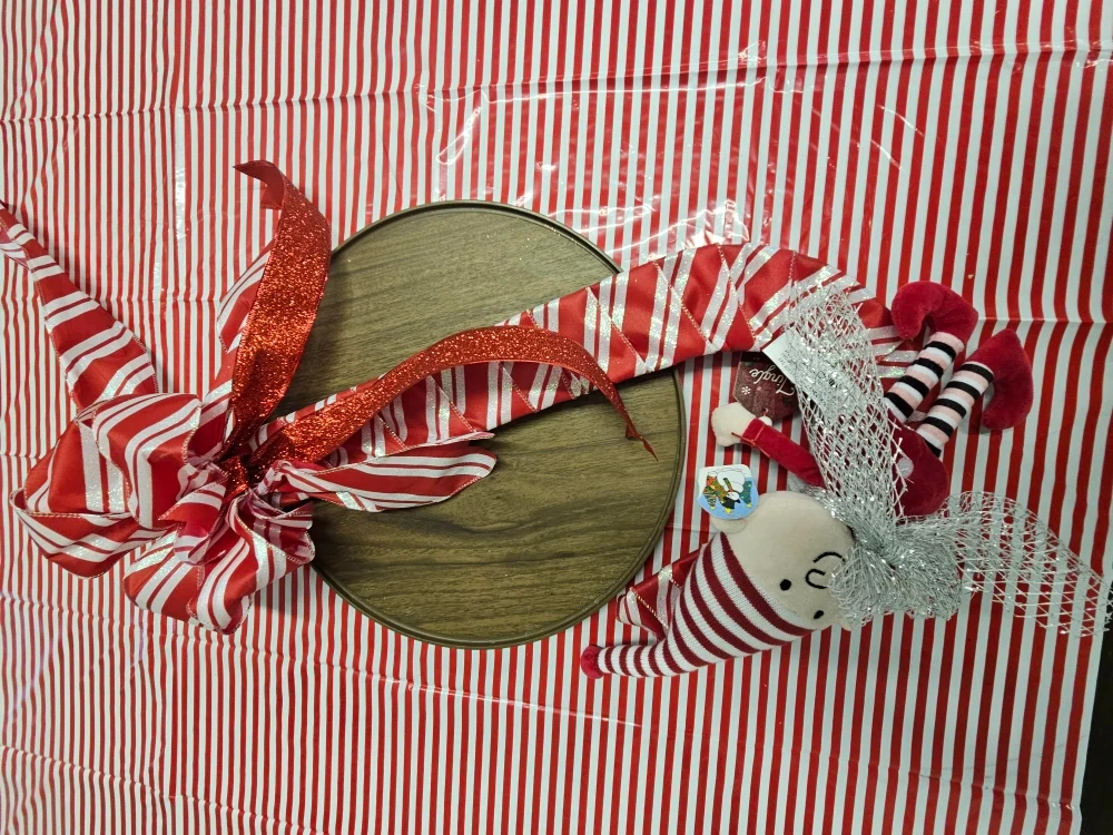 940A cute Christmas elf decoration with red and white stripes, perfect for adding a festive touch to your home during the holidays! It features a charming design with an adorable elf face and festive accents. Sfpf Oshawa Harmony Road South at 401