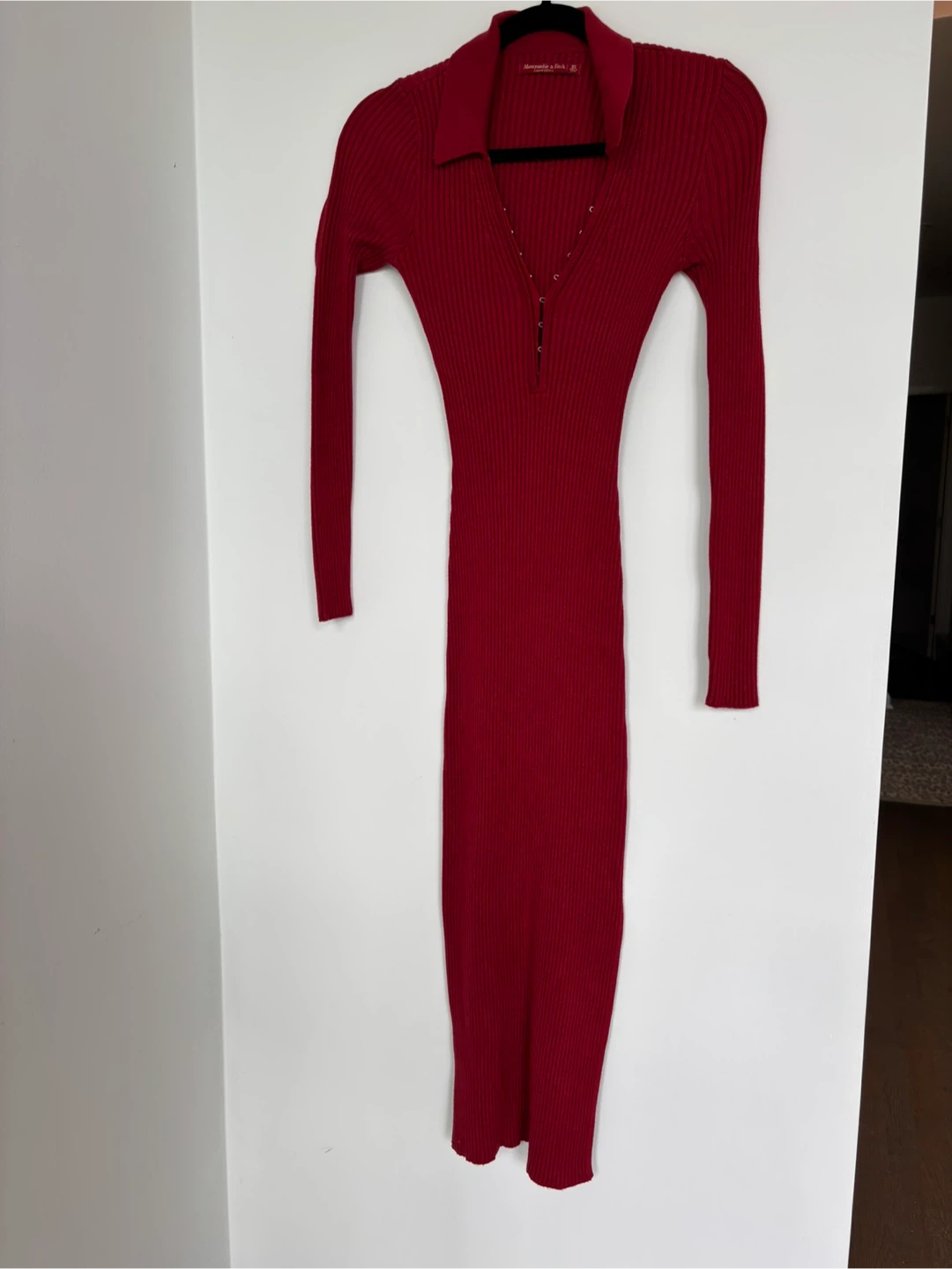 Selling a cute Abercrombie & Fitch red ribbed dress in size XS! It's in perfect condition, only worn once. The ribbed texture adds a nice touch