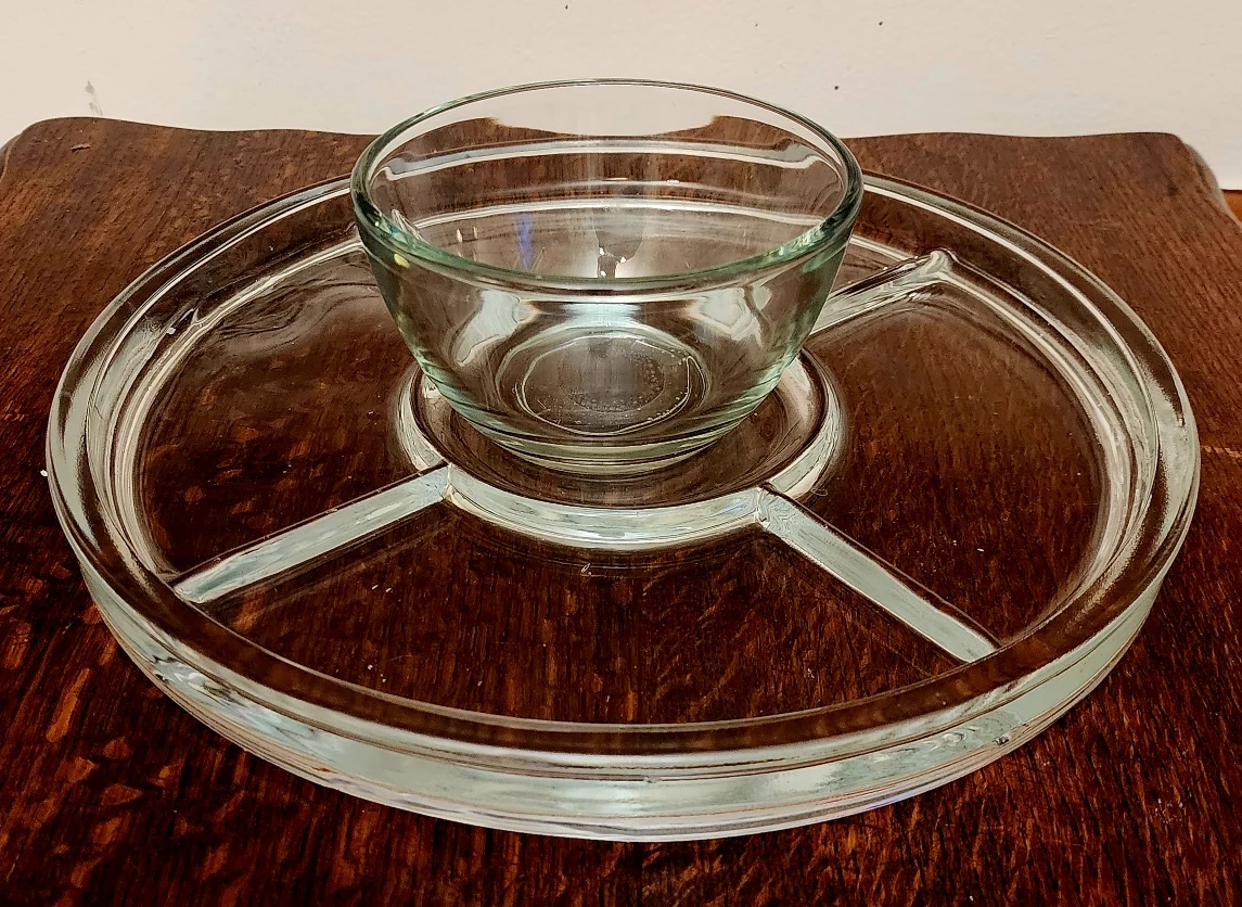 Vintage Glass Serving Platter with Bowl & Lid