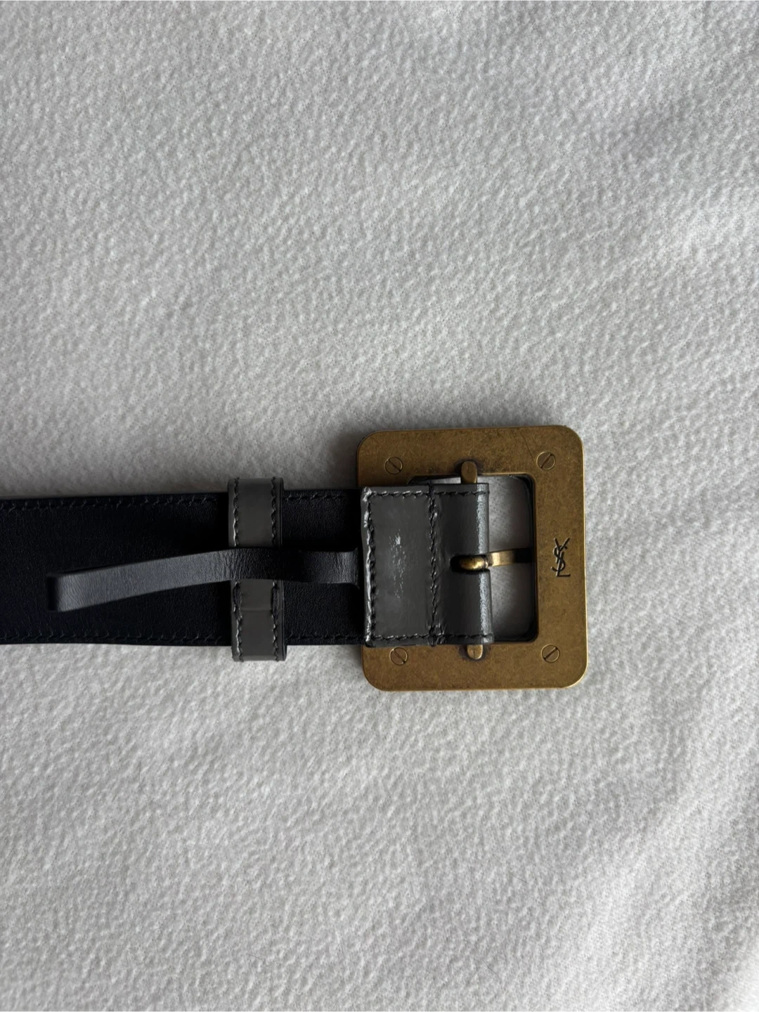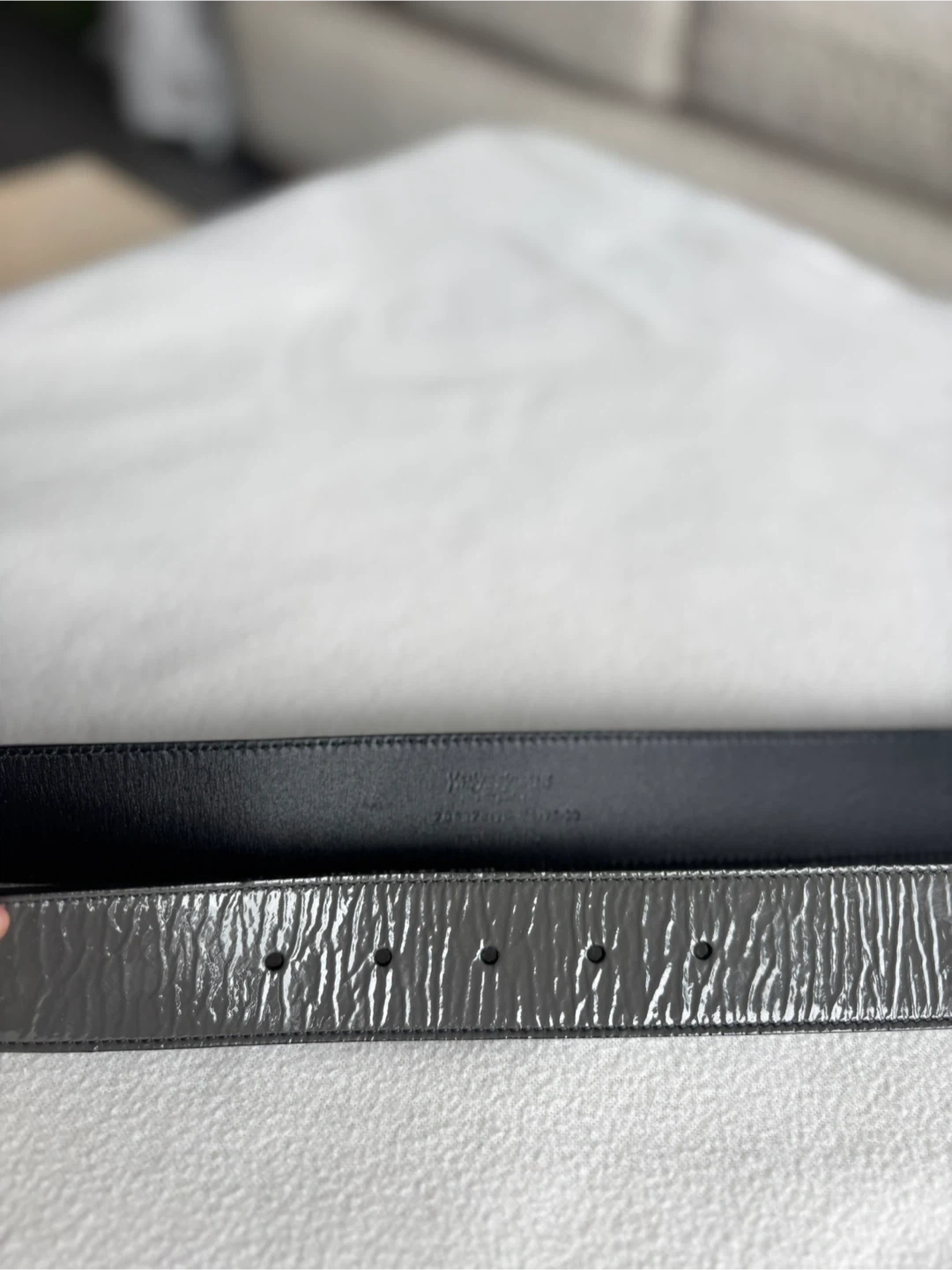 YSL Saint Laurent Grey Patent Leather Belt