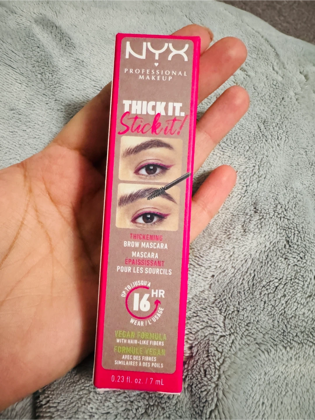 Selling a brand new NYX Thick It! Stick It! Thickening Brow Mascara. It's a vegan formula that contains hair-like fibers. The box says it's good for up to 16 hours of wear! Size is 0.23 fl oz / 7 mL. The box is included