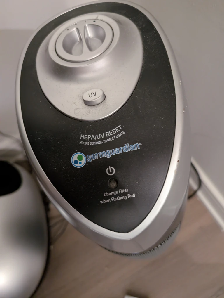 Selling a GermGuardian air purifier. It's great for improving air quality in your home. Features include a HEPA filter and UV light to help remove allergens and odors. The indicator light will let you know when it's time to change the filter