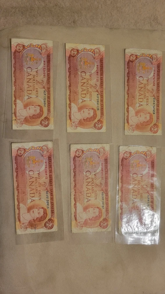 6 Canadian vintage Currency notes in circulated condition as per scans!