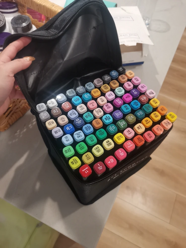 Selling a set of art markers that includes 80 different colours! They come in a convenient carrying case that says 'art supplies 80 COLORS' on the side. Perfect for artists of all level. Original price $35
