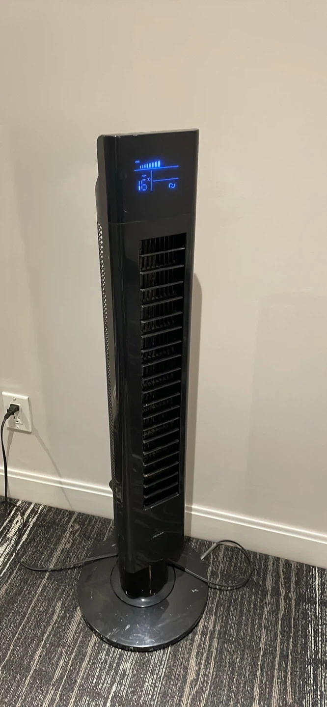 618Selling a NOMA Oscillating DC Motor Tower Fan in black. It has 5 speeds and is 44 inches tall. It oscillates to keep the whole room cool
