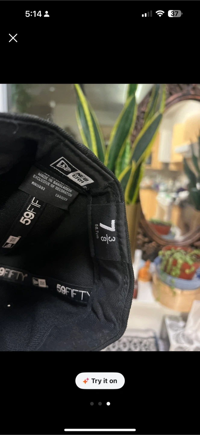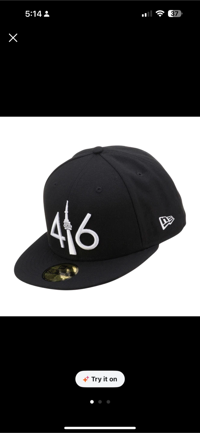 Selling a New Era 416 59FIFTY hat in black and white. It's a size 7 3/8. The hat features the 416 design.