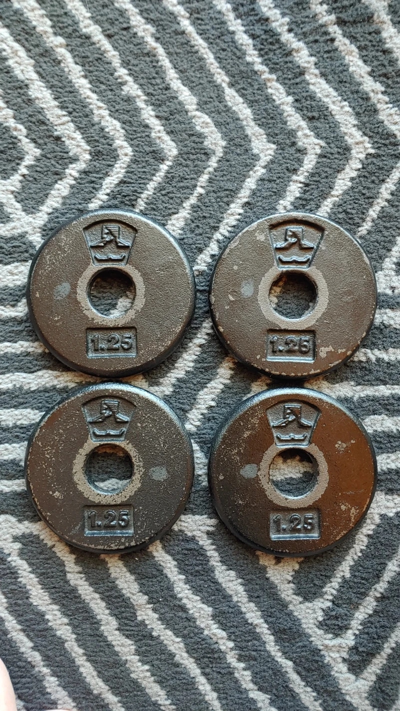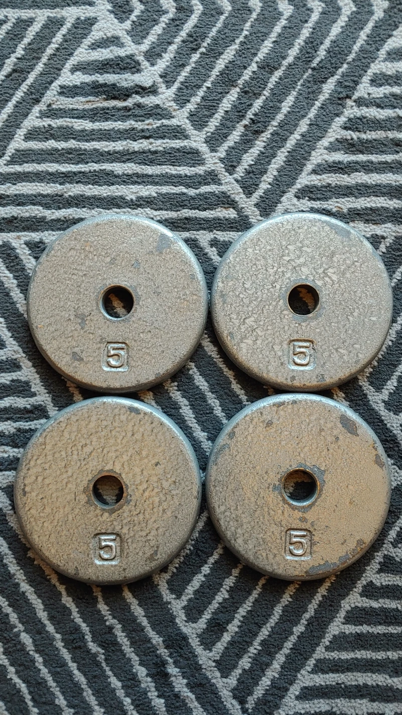 Selling a variety of weight plates in different sizes: 5 lbs, 1.25 lbs, and 2.5 lbs