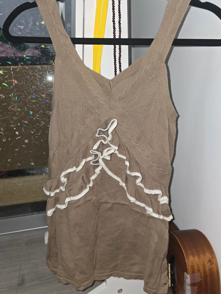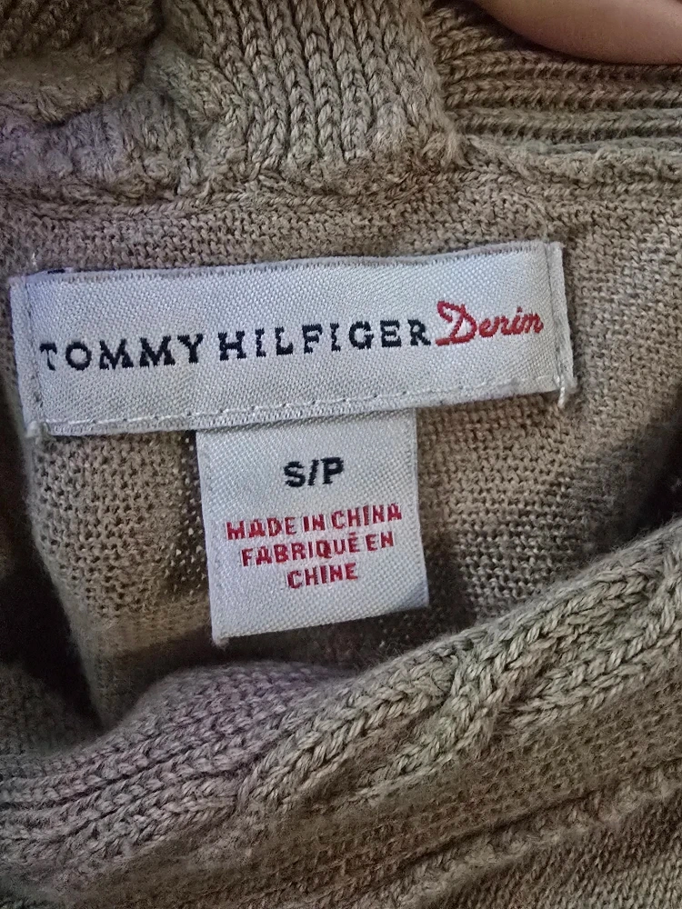Cute Tommy Hilfiger Denim knit top up for grabs! It's a size S/P and has a lovely cable knit design with ruffle detailing. Perfect for adding a touch of flair to your wardrobe