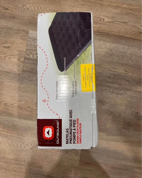 Selling a brand new Outbound queen-size air mattress that's still in its original box! It comes with a built-in foot pump for easy inflation. The airbed is made of durable PVC material and is black in colour. Originally bought for $67.99.