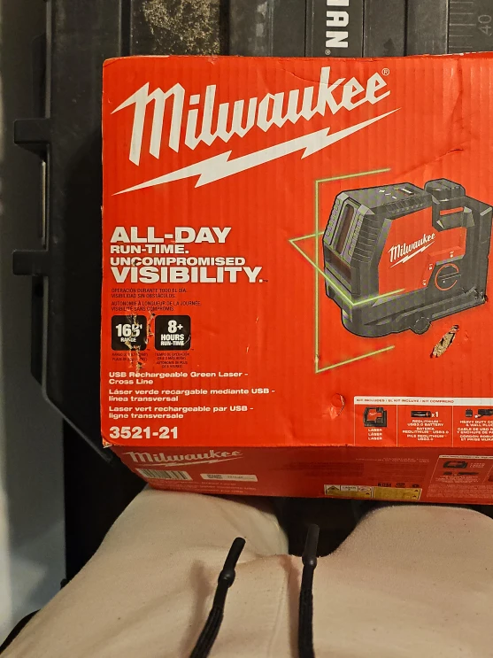 Selling a Milwaukee 3521-21 All-Day Green Laser. It features uncompromising visibility and a USB rechargeable green laser. Includes the case and all original components