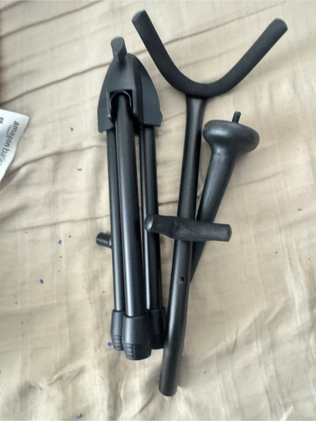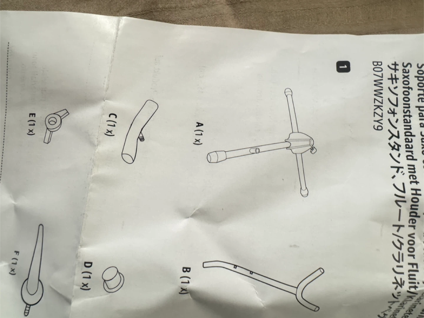 This is a saxophone, flute, or clarinet stand. It comes with all the components to assemble it. Please refer to the images for assembly instructions
