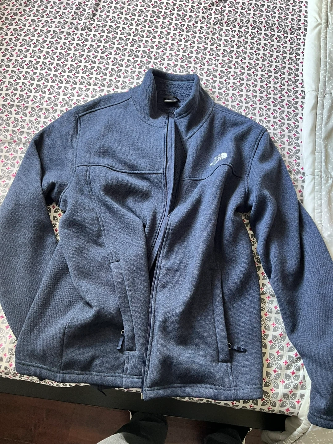Here's a The North Face full zip jacket in a nice navy blue colour. It's in great condition and ready for a new home!