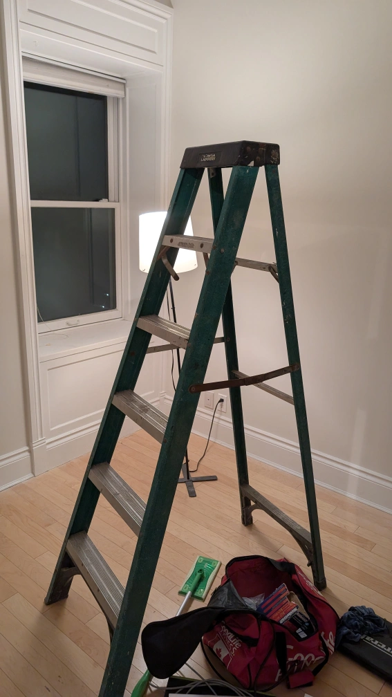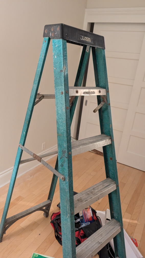 Selling a trestle Ladder/stepladder, about 6 feet tall. It's in used condition, but still sturdy for your projects.