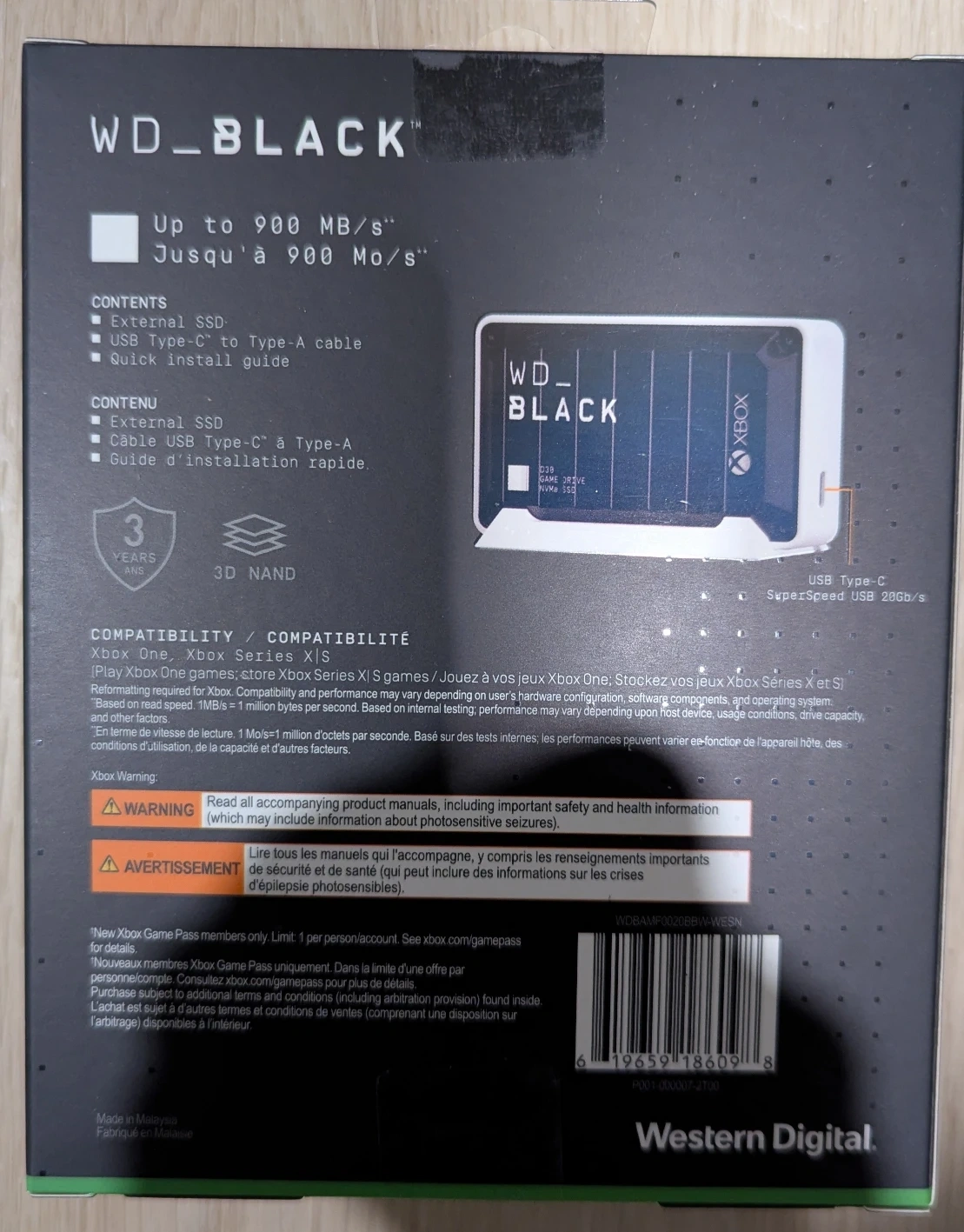 Selling a brand new WD_BLACK D30 Game Drive SSD with 2TB of storage.