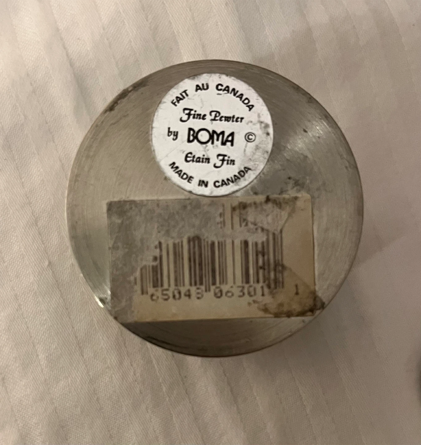 This Boma Fine Pewter box, crafted in Canada, showcases intricate Indigenous art. It's a collectible piece in good condition, perfect for storing small treasures with a touch of Canadian heritage.
