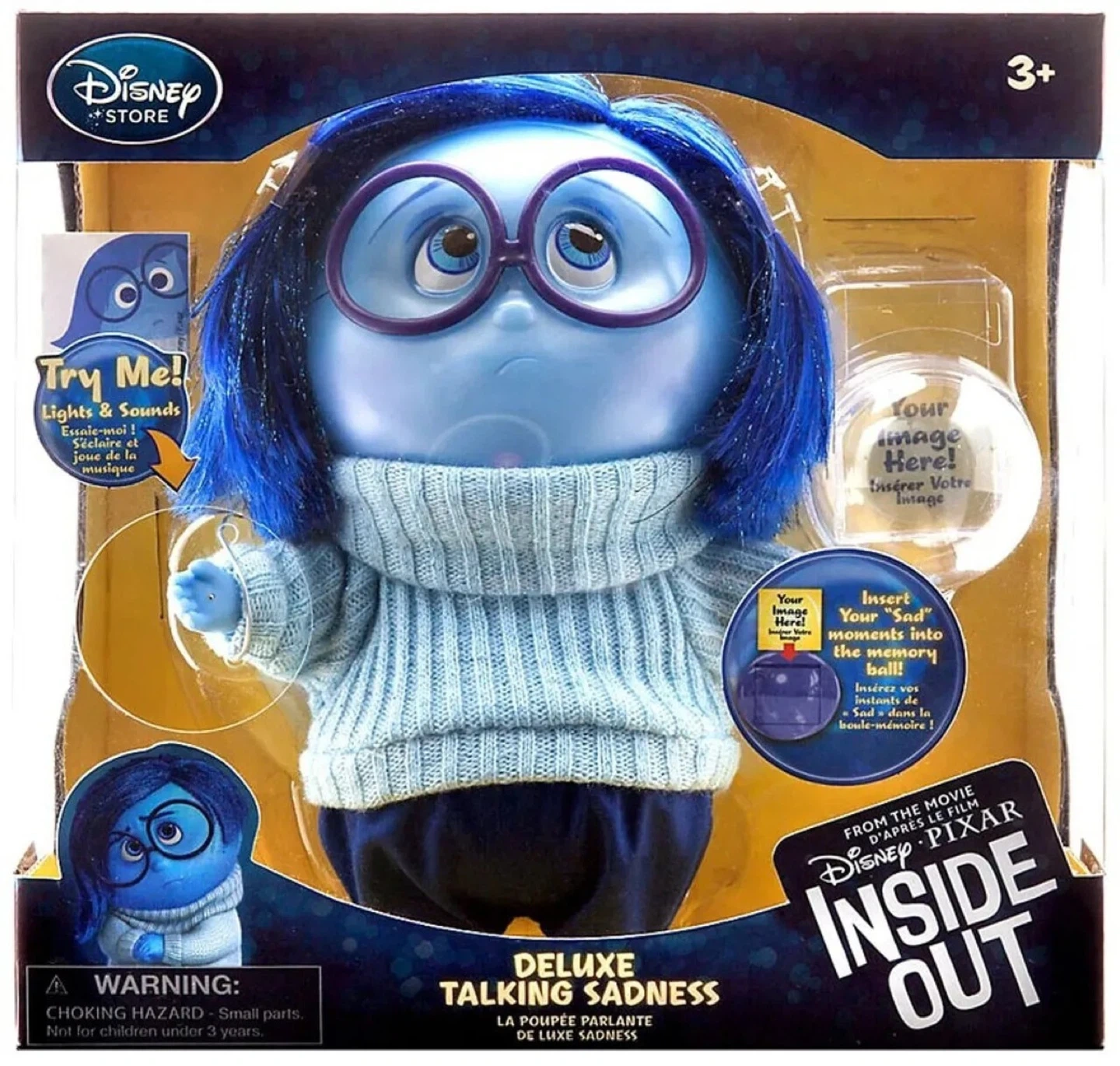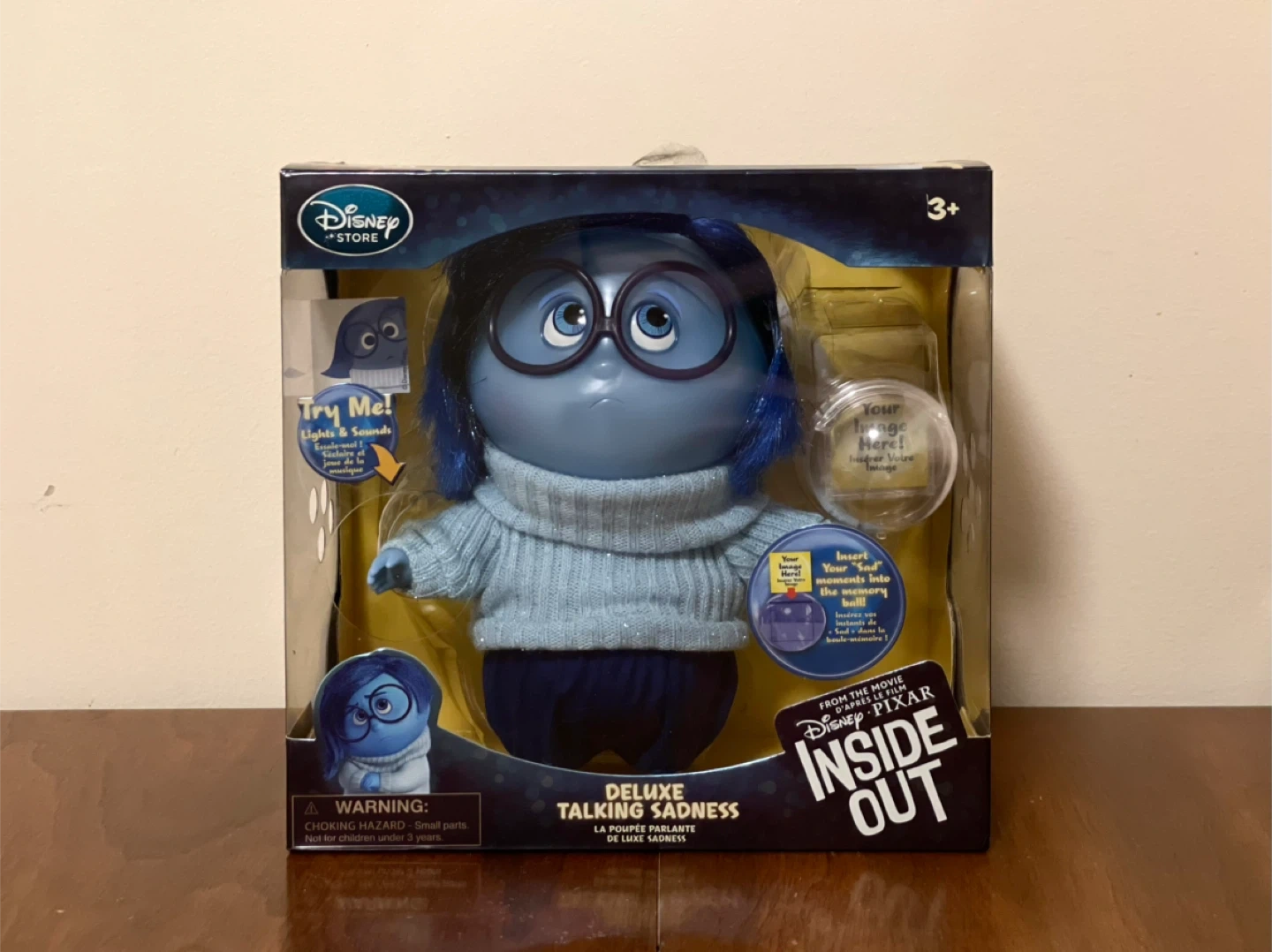 Selling a brand new, in-box Disney Store Deluxe Talking Sadness doll from Inside Out! This adorable doll speaks 10 phrases and includes a light-up feature. Perfect for kids aged 3+ or collectors who love the movie Inside Out ππ©΅π