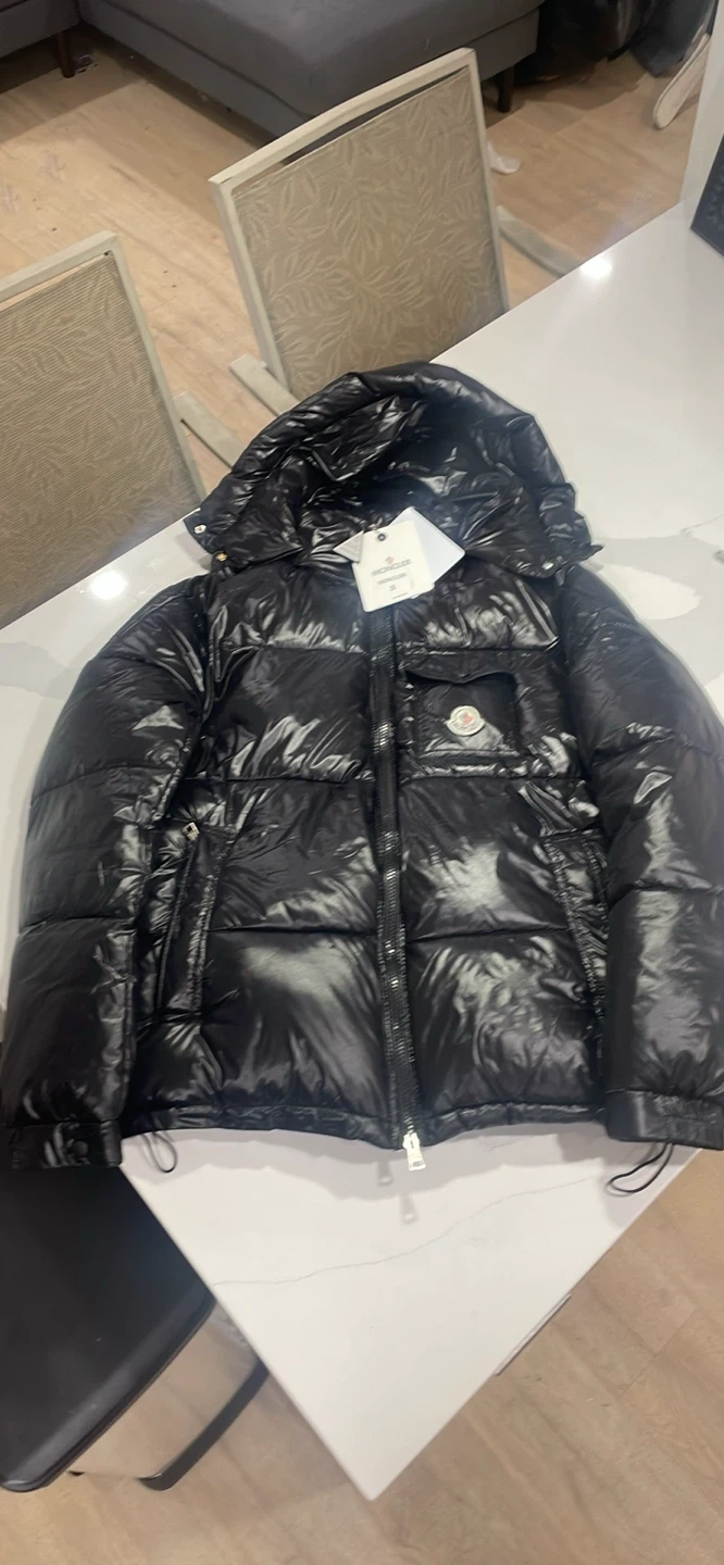Selling a Moncler puffer jacket in black! It's in great condition and ready to keep you warm. The jacket features a stylish design and the quality you'd expect from Moncler, perfect for braving the Canadian weather