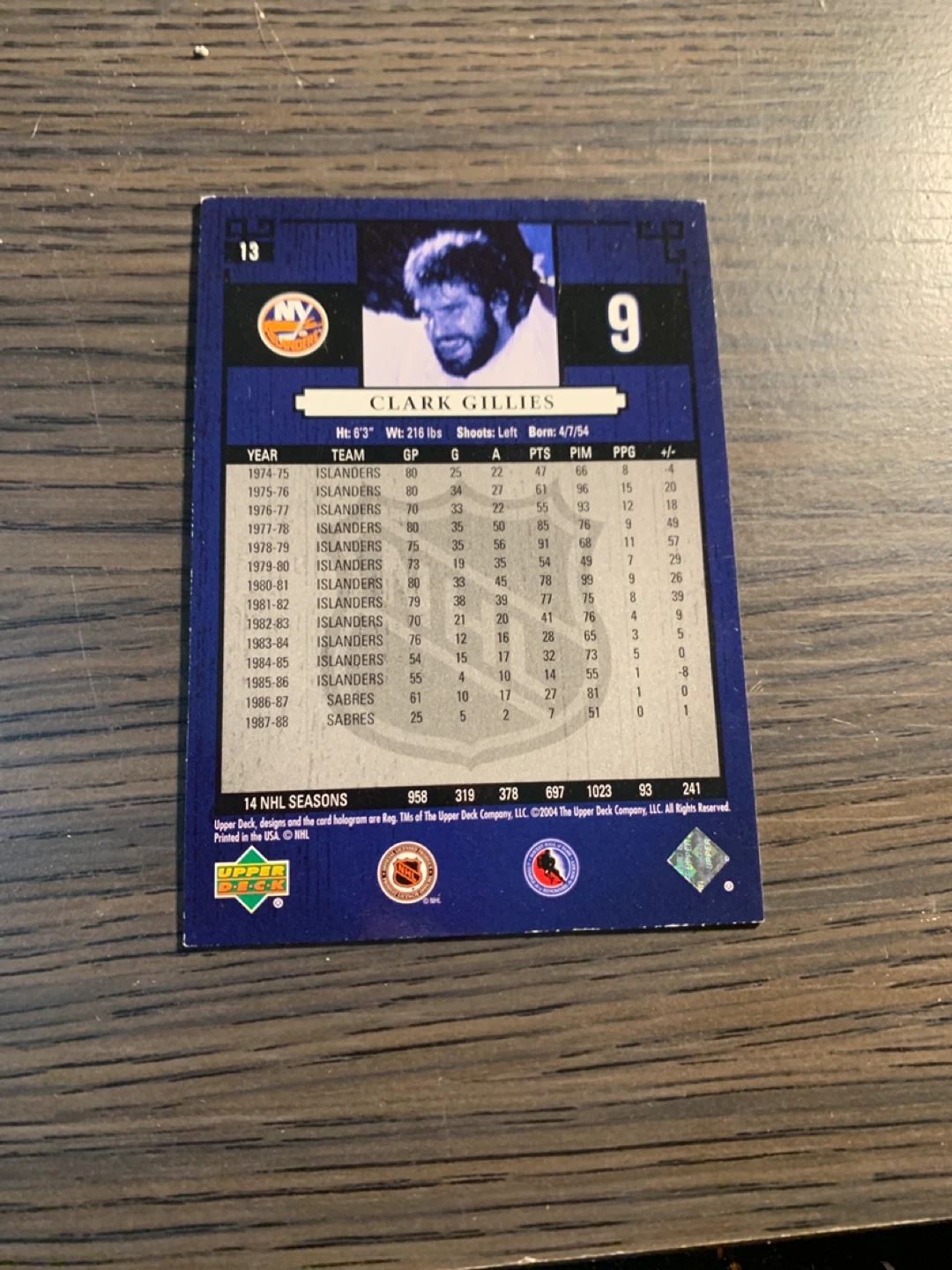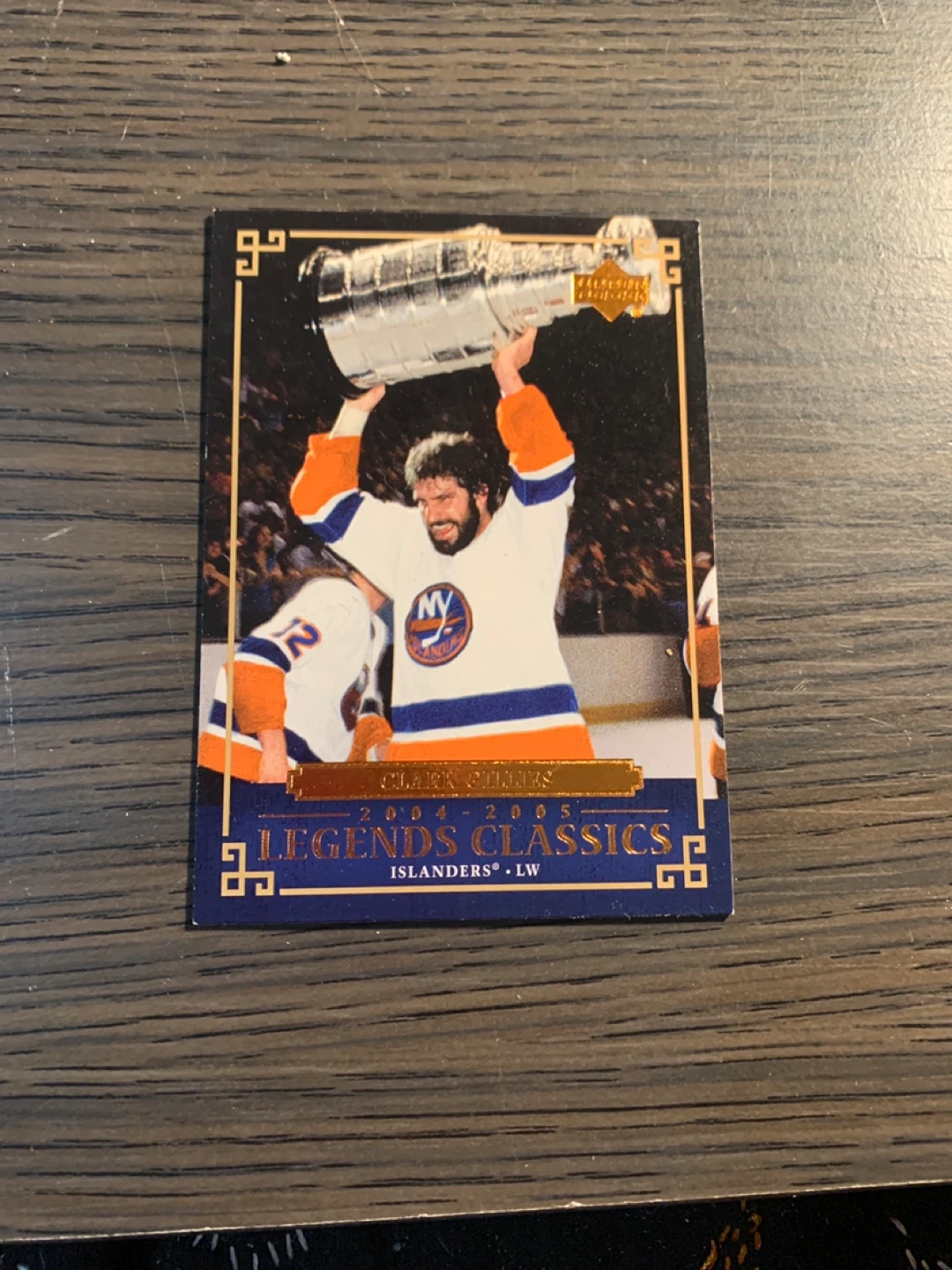 Selling a Clark Gillies Legends Classics hockey card. It features Clark Gillies from the Islanders and is from the 2004-2005 season. Great for any hockey fan or card collector!