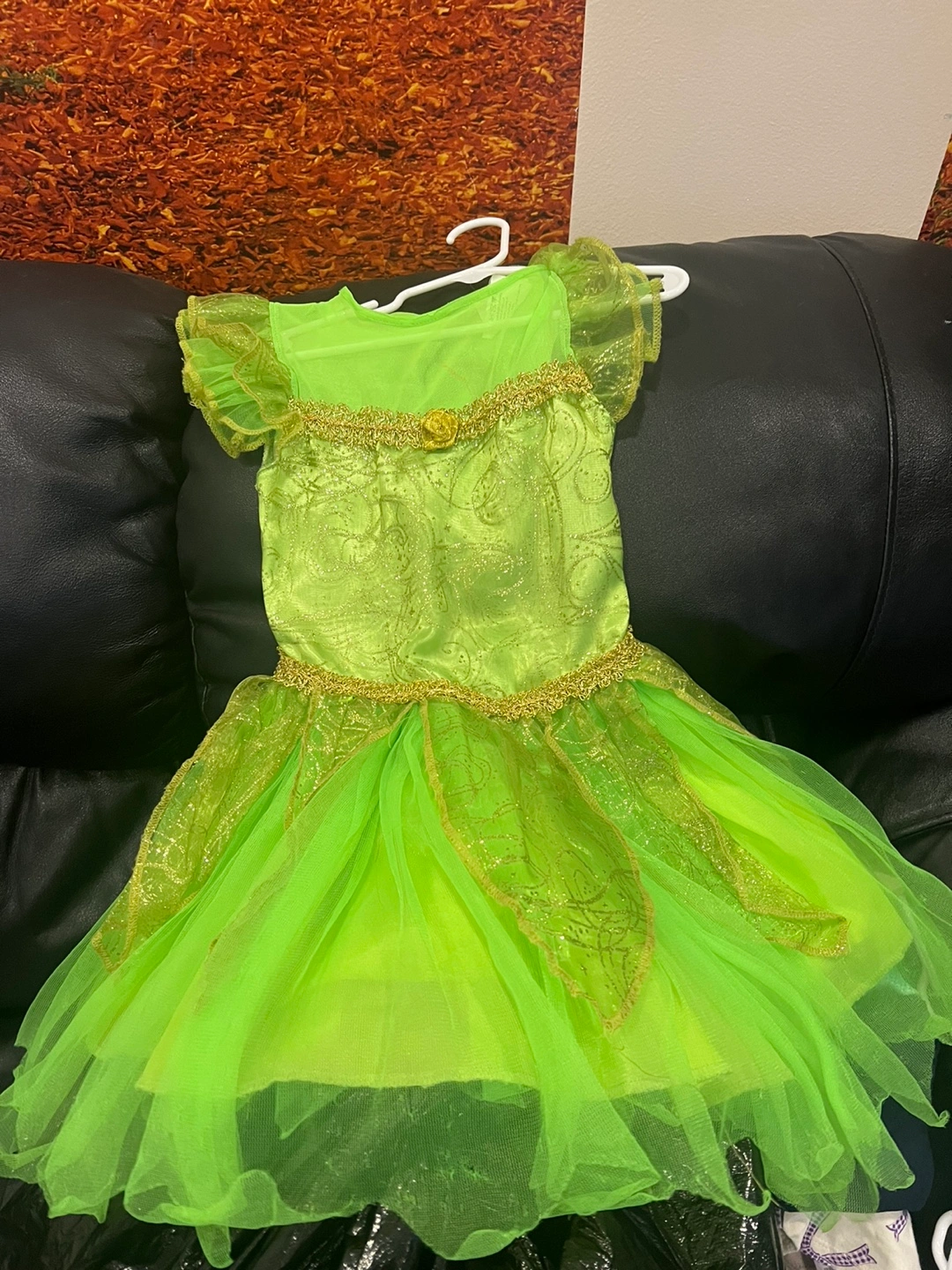Selling a few dress-up costumes for kids. Great for playtime or Halloween! Includes a yellow princess dress, a pink and blue mermaid dress, and a green fairy dress