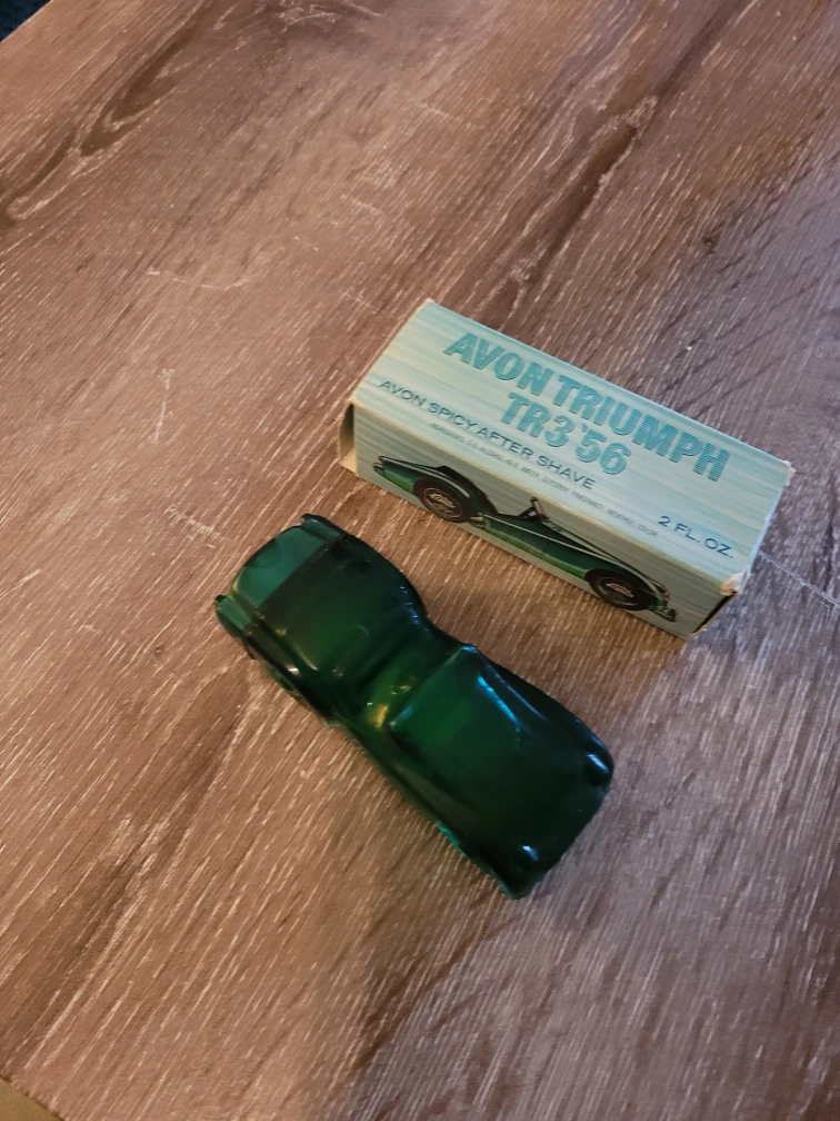 Selling a vintage Avon Triumph TR3 '56 Spicy After Shave. It comes in a 2 fl oz bottle and includes the original box. A cool collectible!