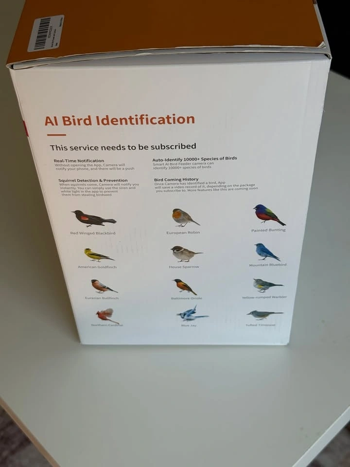 Hello, I am looking to sell this new in box smart bird feeder. Must pickup at my place in Burlington. Details below from the manufacturer. Observe and learn about over 10,000 bird species with this smart bird feeder camera, offering 2.5K HD and night vision for clear, detailed viewing, even capturing bird expressions. For a $1.90 monthly subscription, you gain access to comprehensive bird information, sounds, and habits. Real-time notifications alert your phone when birds arrive, and you can even deter squirrels remotely. Powered continuously by solar panels and an 8000mAh battery with robust 2.4GHz Wi-Fi, it features a 2.5L seed capacity and an IP66 waterproof design for all-weather use. Easily save recordings to a memory card or cloud, and share your discoveries with family, friends, or on social media.