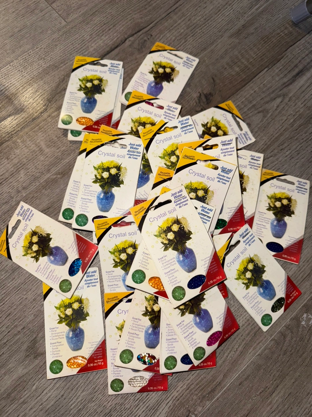 These little packets of crystal soil are perfect for floral arrangements, centerpieces, and house plants! Just add water and watch them grow! Each package contains 0.35 oz / 10 g of crystal soil