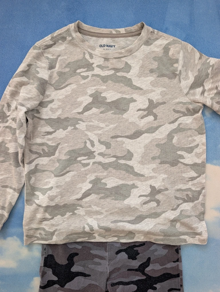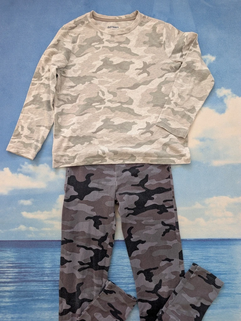 Kids 6-8Y Old Navy Camo Pajama Set Cotton : Cozy Old Navy cotton pajama set featuring a cool camo pattern, gently used.