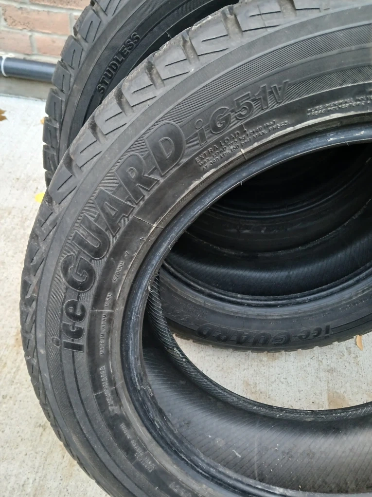 Selling a set of Yokohama Ice Guard iG51v winter tires. The size is 235/60R18. They are in good condition and ready for the winter season,
