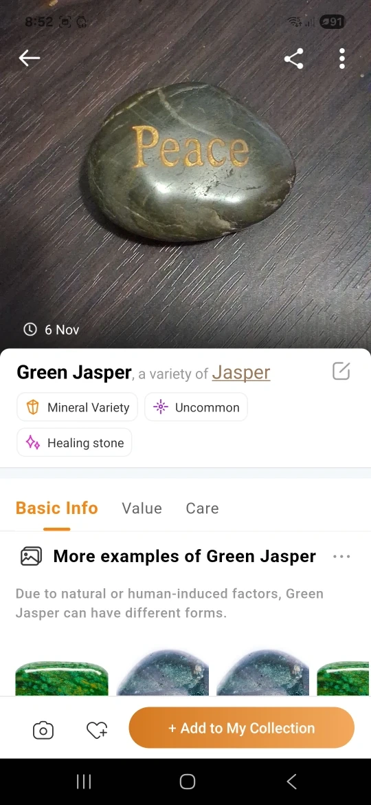 Selling a set of four engraved stones! They feature the words 'Love,' 'Peace,' 'Gratitude,' and 'Healing.' These stones are great for meditation or as a thoughtful gift. 3 are Jasper 1 is Shungite.