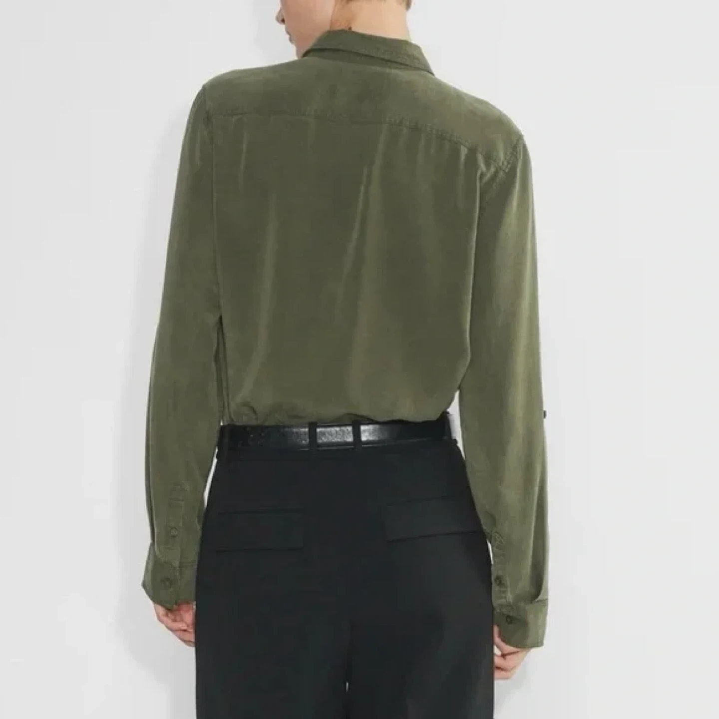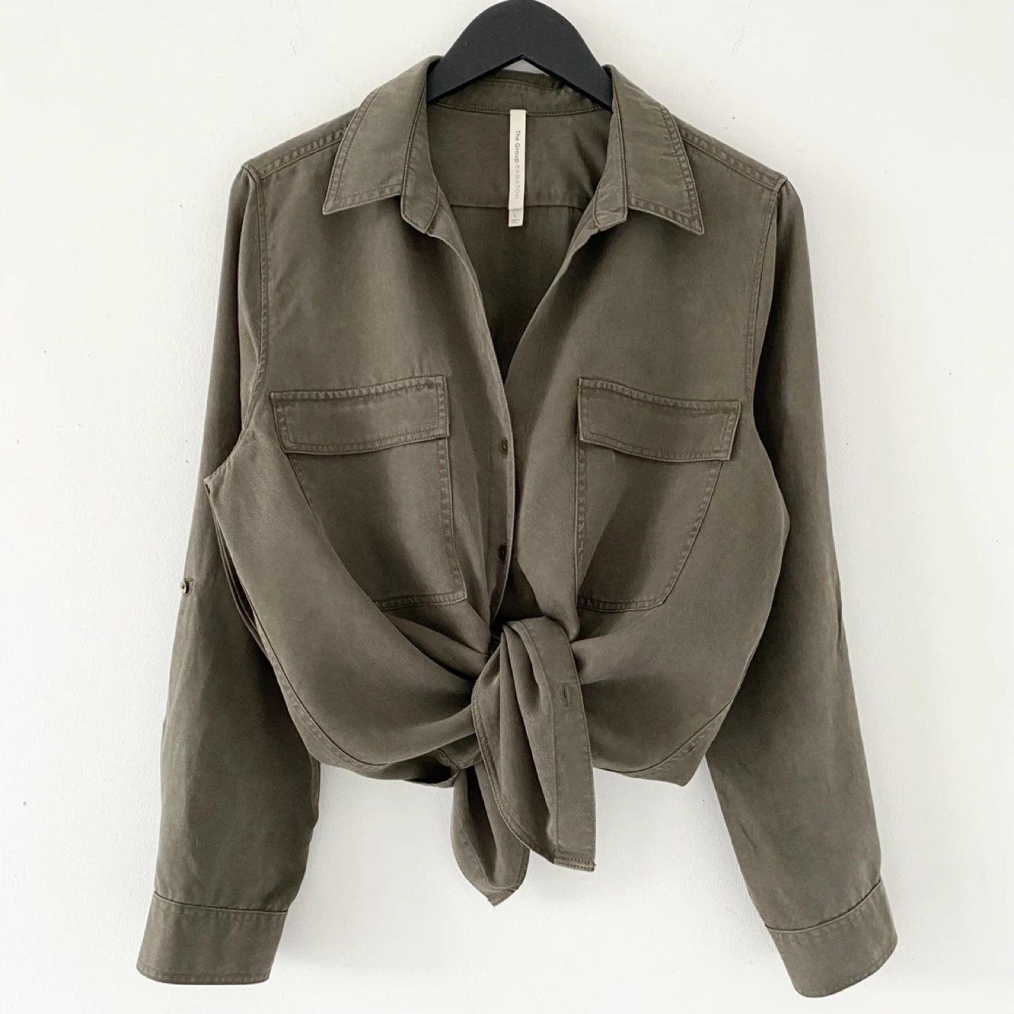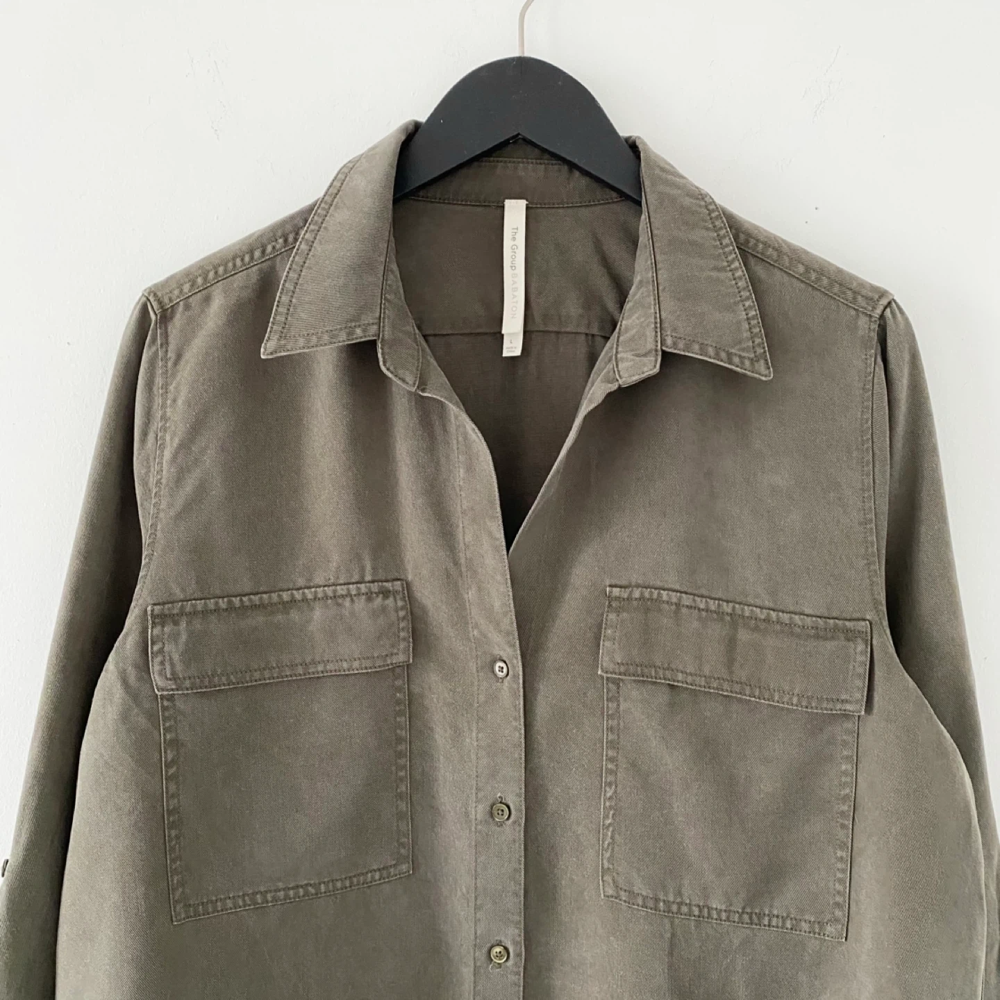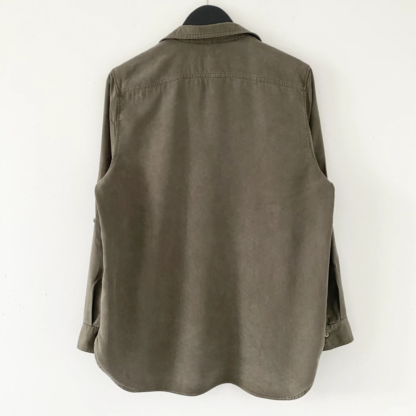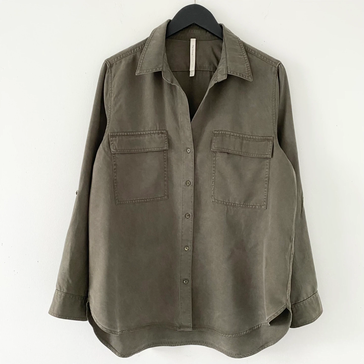 Aritzia Babaton utility shirt. Features a relaxed fit, patch pockets and tabs to keep sleeves rolled-up. It's made from 100% Lyocell - responsibly sourced wood-based fibres. It's soft and drapes so beautifully. Can be worn many seasons. Well made - inside seams are finished with french seams for extra clean finish and quality. There’s no staining or damage. It's clean and in excellent condition.