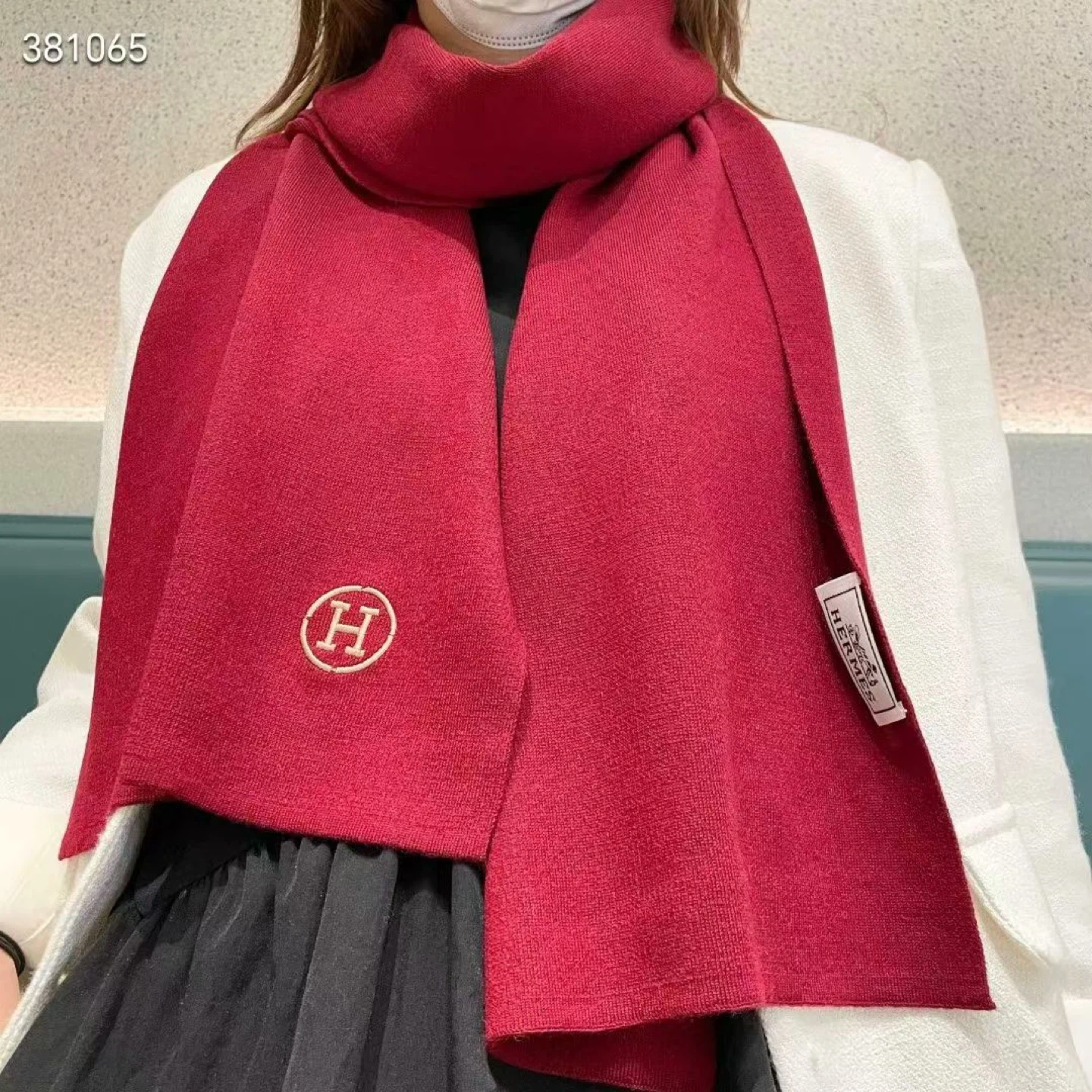 A stylish red scarf from Hermès, perfect for adding a touch of elegance to any outfit! The scarf features the iconic Hermès logo.