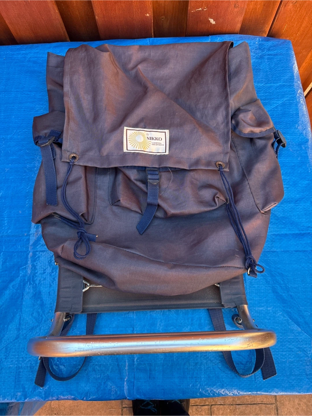 Nikko backpack with a frame! It's in good condition and ready for your next outdoor adventure. The backpack is a dark blue colour and has multiple pockets for easy organization