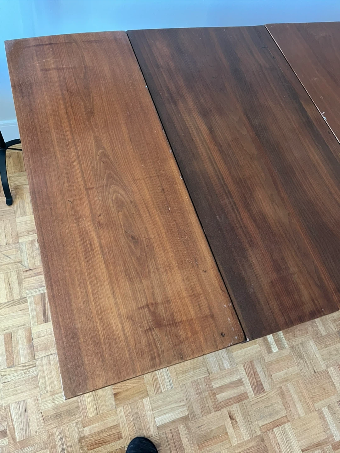 Please note: the table is well-used and has various visible signs of wear, including marks, scratches, and areas that would benefit from refinishing. It’s ideal for someone who doesn’t mind a bit of character or is looking for a simple restoration project.