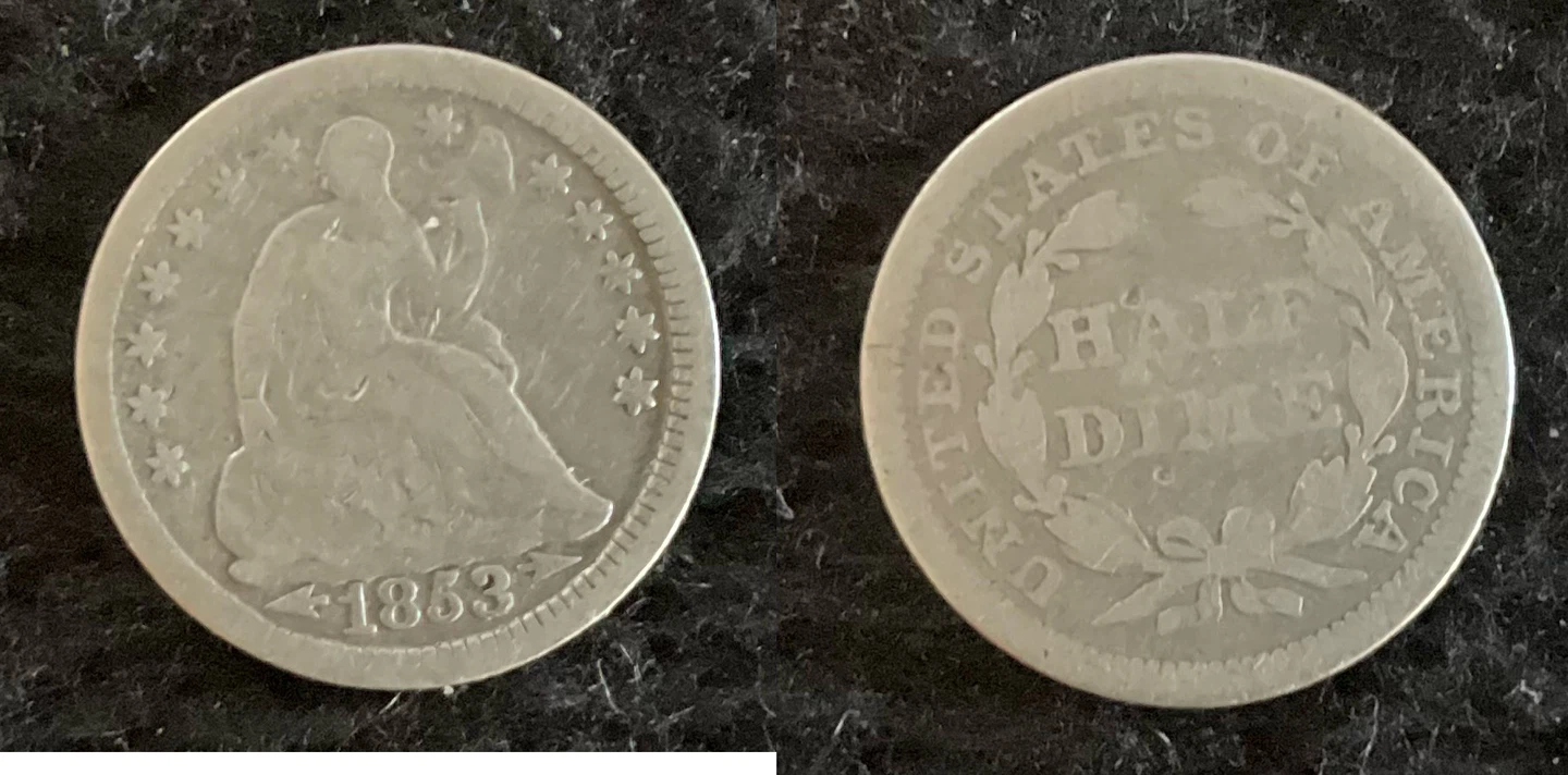 1 / 31 / 3Buy & Sell1853 Seated Liberty Half Dime with Arrows1853 Seated Liberty Half Dime with Arrows$20Selling an 1853 Seated Liberty Half Dime. This is the version with arrows on either side of the date. Made from 90% silver.WHERE TO MEETCheck LocationView MapSELLERverifiedRobClairlea1849 reviews2 chats·2 favorites·29 viewsSEND CHAT TO SELLERHi Rob! I’m interested in your listing.Hi Rob! I’m interested in your listing.Get the Karrot app to chatSign In to chat