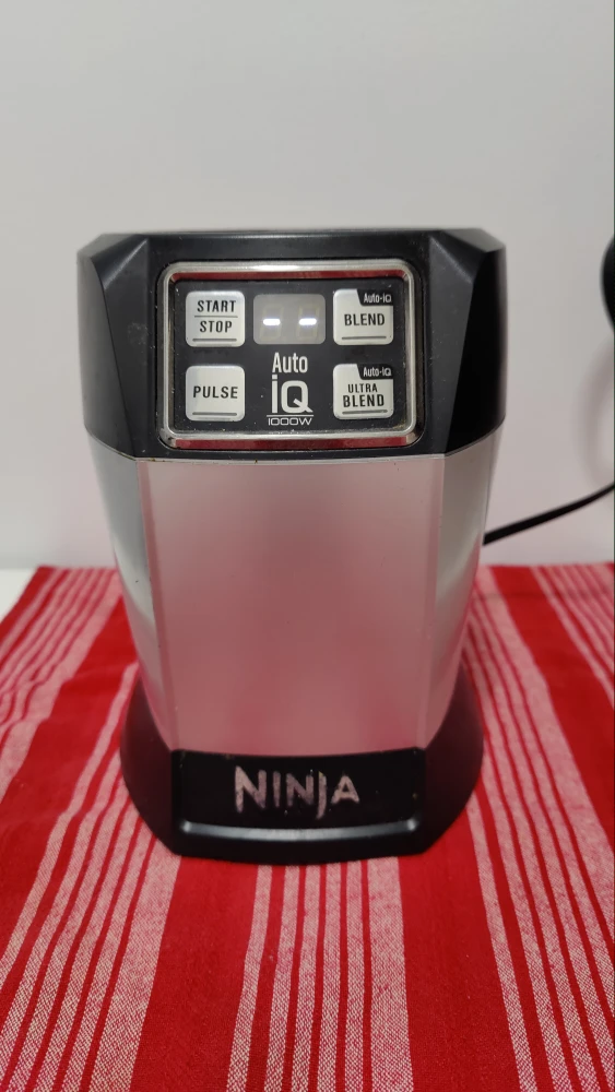 Selling a Ninja Auto-IQ 1000W blender without extractor blade as the lid with the extractor blade got broken. Replacement lid with extractor blade is about $15 at major vendors. It comes with two 18oz (530ml) and 24oz (710ml) Nutri Ninja cups with lids. The blender features Auto-IQ technology for optimized blending. Great for making smoothies and other blended drinks!