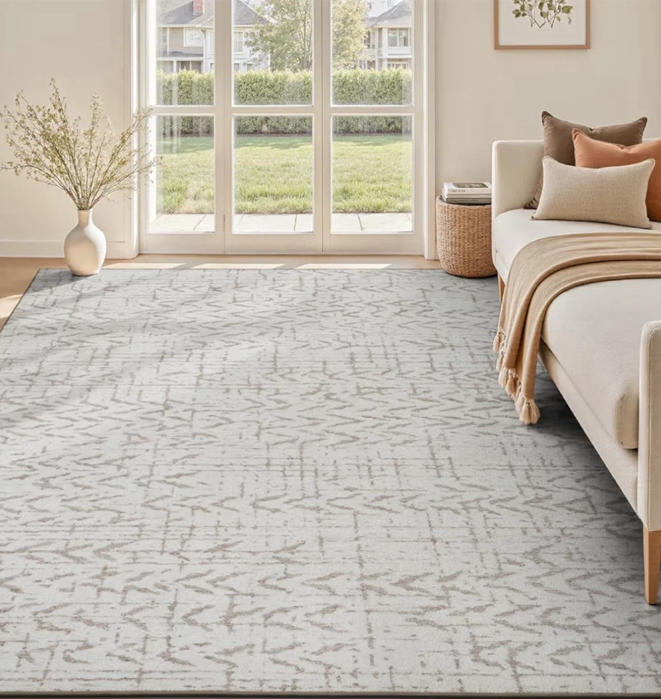 Beige & Grey Abstract Area Rug 8x10 ft- Machine Washable
