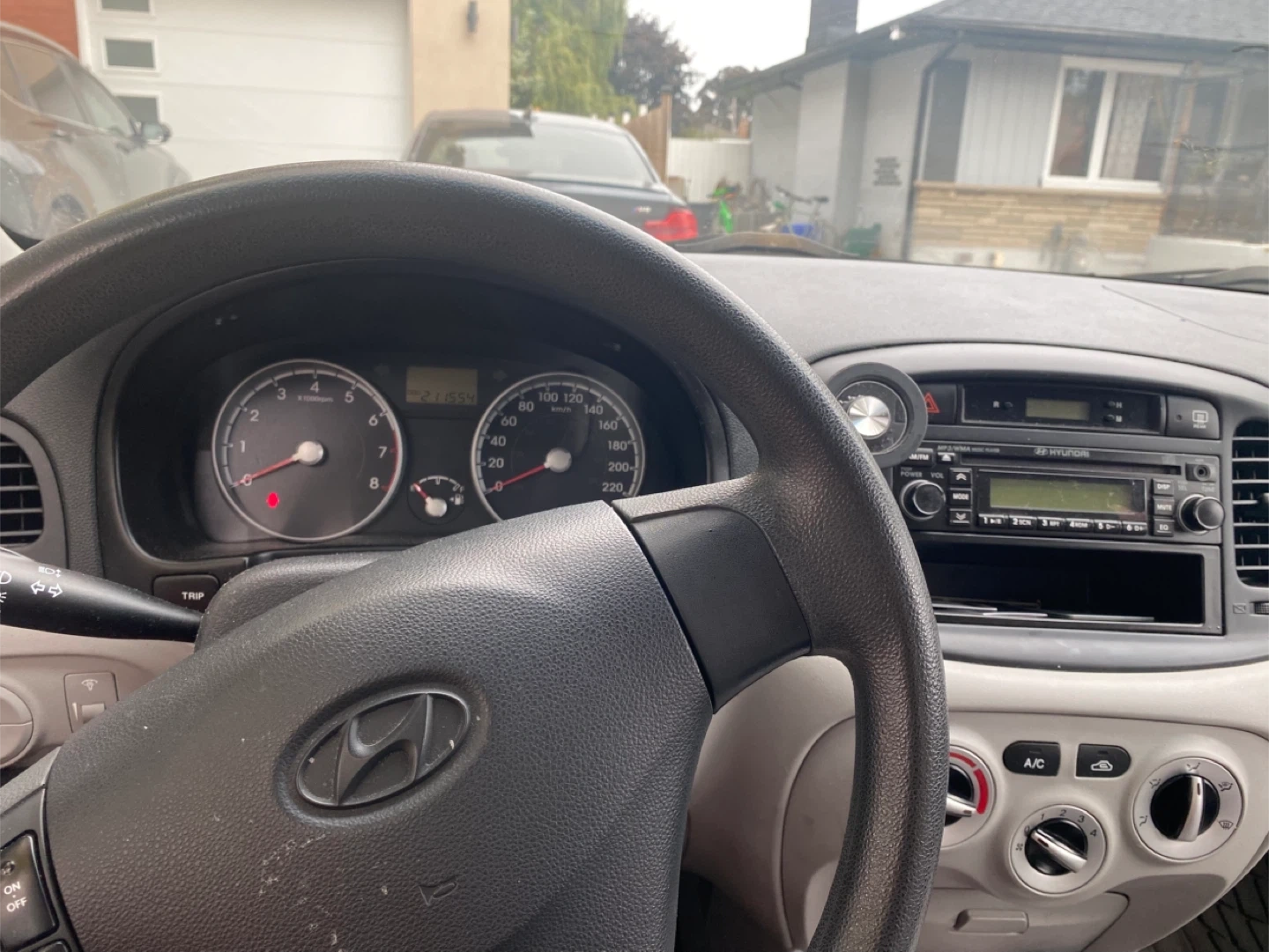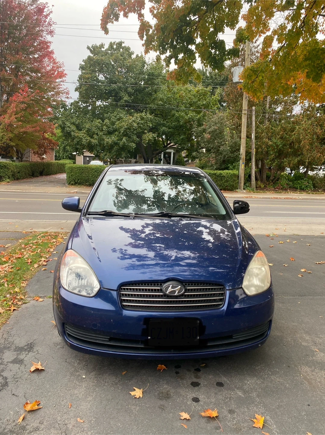 Selling a blue Hyundai Accent sedan. It's a reliable car for getting around town! Feel free to message me if you're interested.