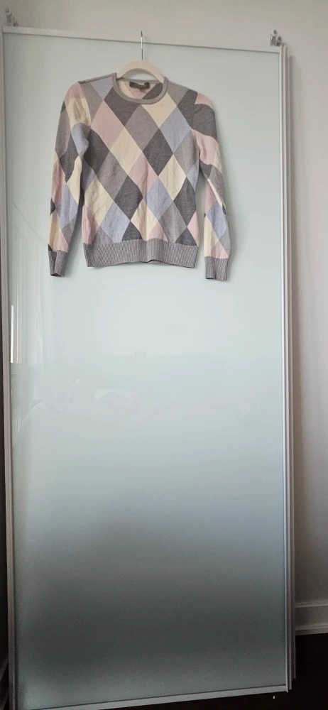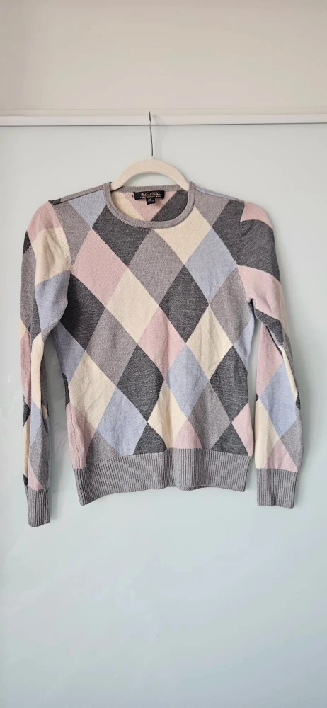 Cozy Brooks Brothers sweater made of extra-fine 100% Italian merino wool. It's an XS and features a classic argyle pattern in shades of grey, pink, blue and cream. It's in fantastic condition!