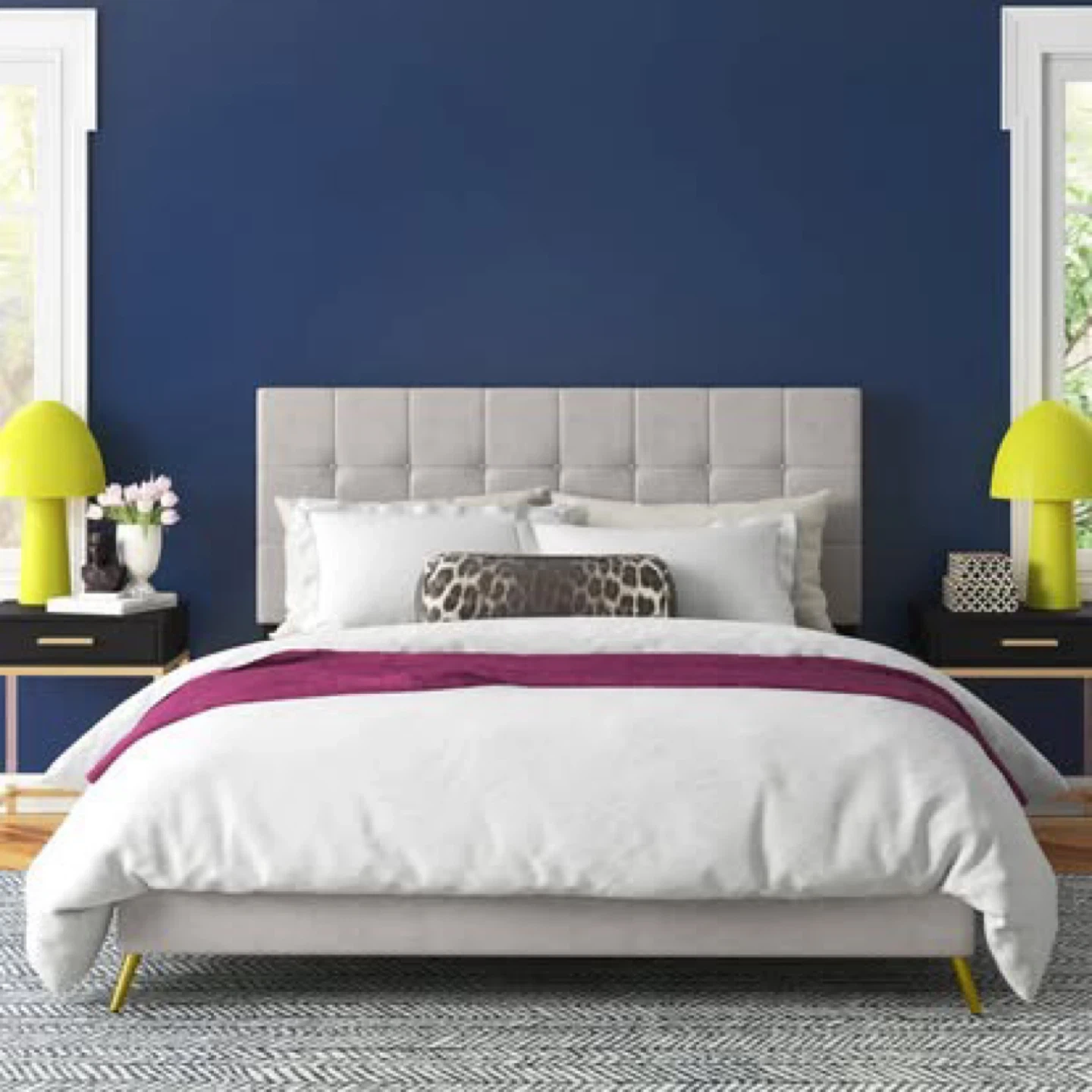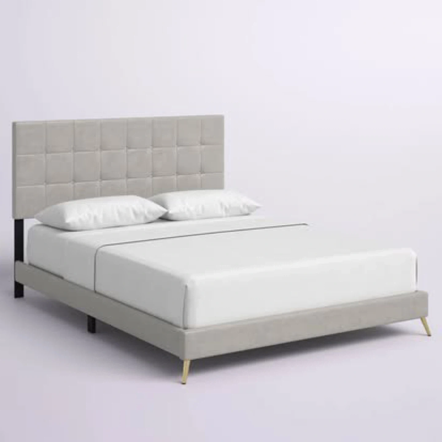 Selling a stylish upholstered platform bed frame! It's brand new and would be a lovely addition to any bedroom. The low profile design gives it a modern look, and the upholstery adds a touch of elegance