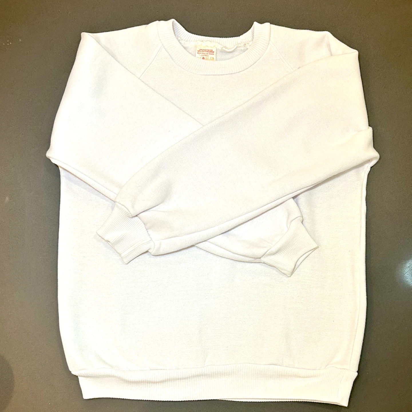 Selling a comfy white vintage crewneck sweatshirt! The material is 65% polyester and 35% cotton, made right here in Canada. Perfect for cozy days or layering up- NO STAINS, NO HOLES, NO PILLS