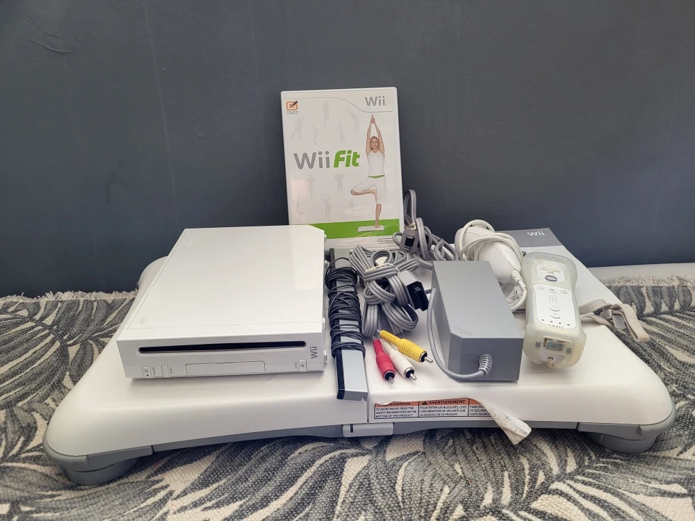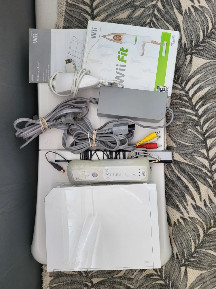 Selling a Nintendo Wii console with the Wii Fit game and balance board! It comes with all the necessary cables and a Wii Remote, so you're ready to get active right away. Perfect for some fun exercise at home!