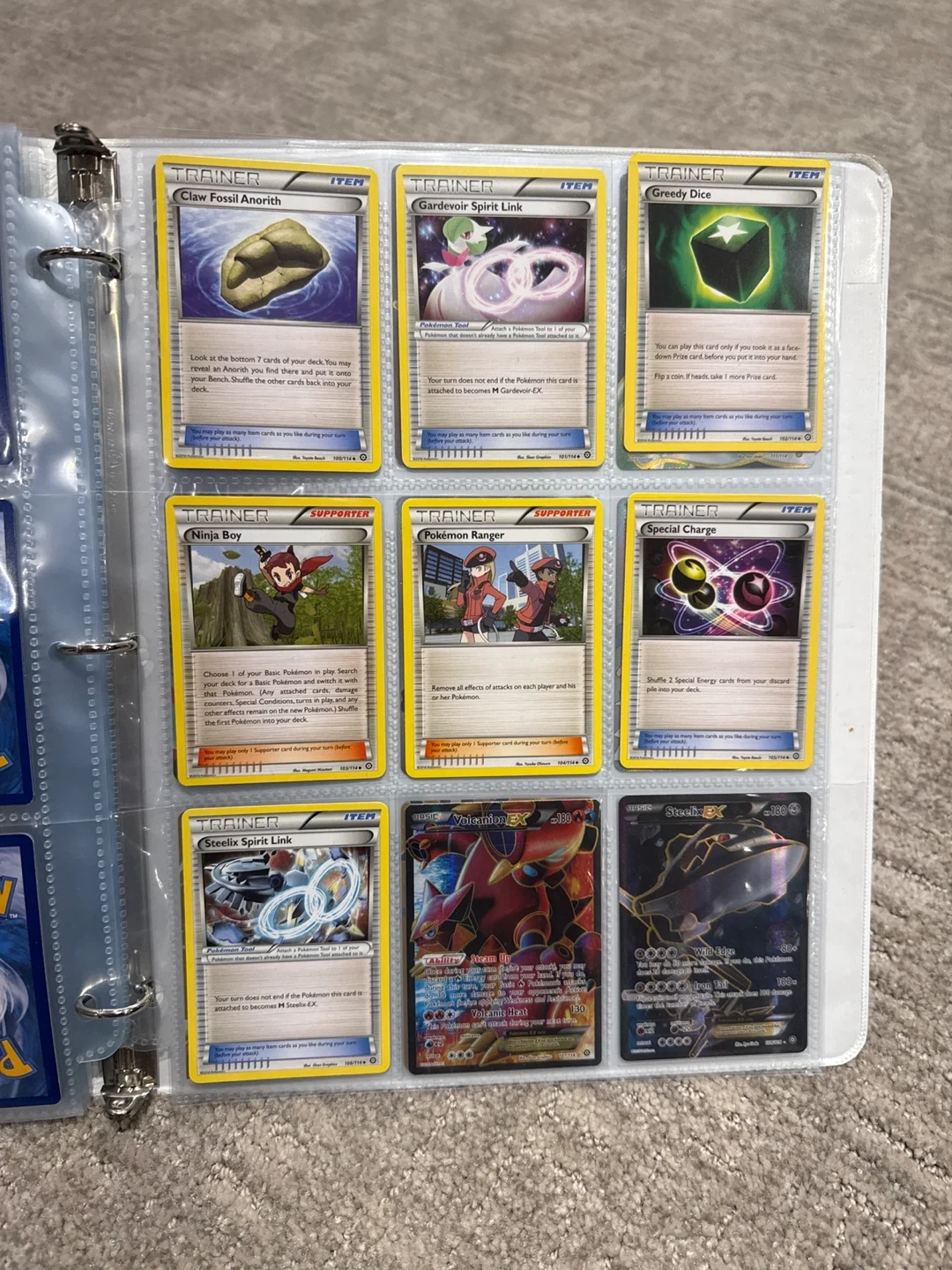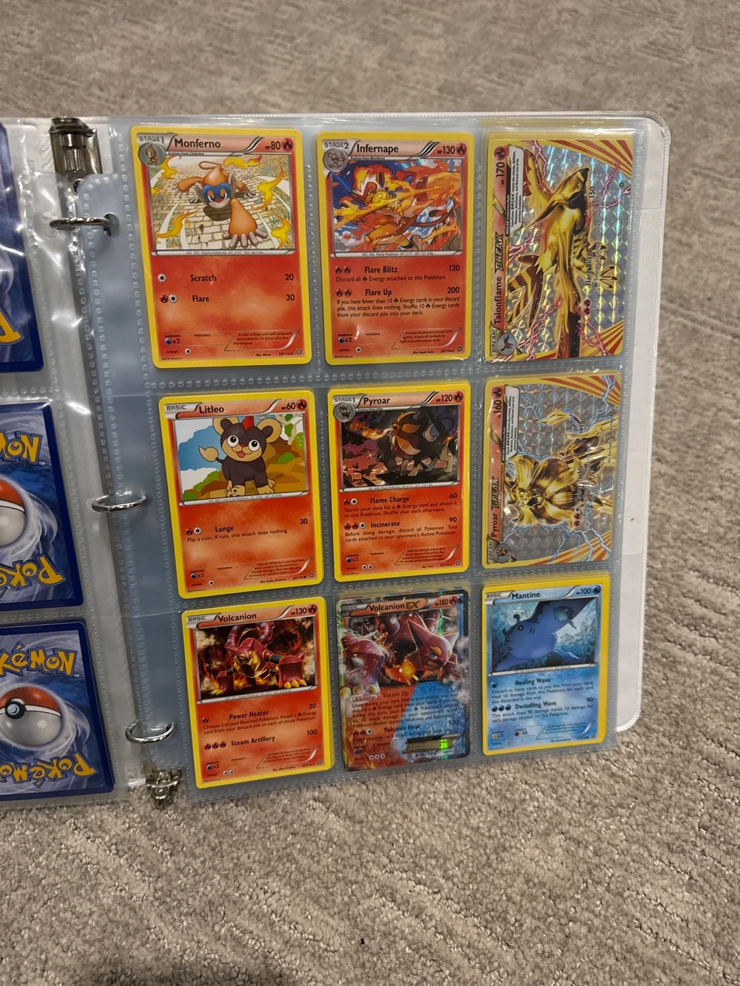 Selling a collection of Pokémon trading cards. Great for collectors or players looking to expand their decks. All cards are in sleeves and stored in a binder for protection. Take a look at the photos to see the variety of cards included!