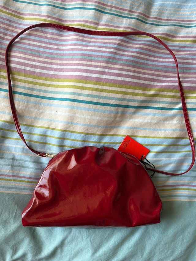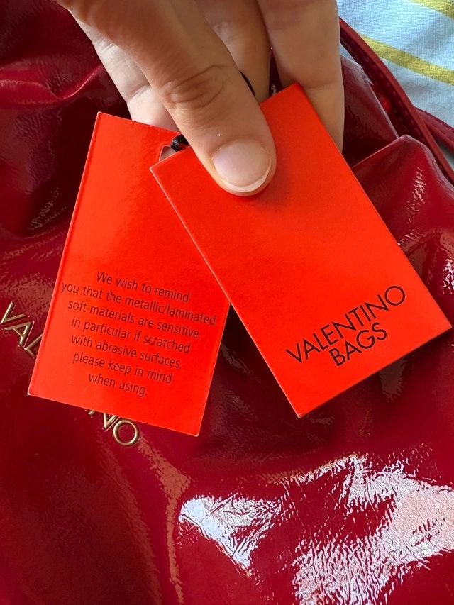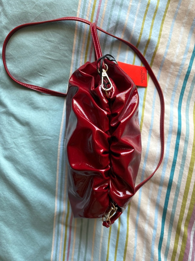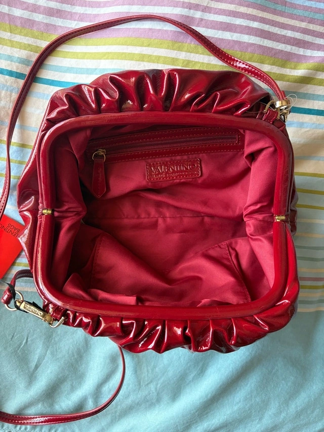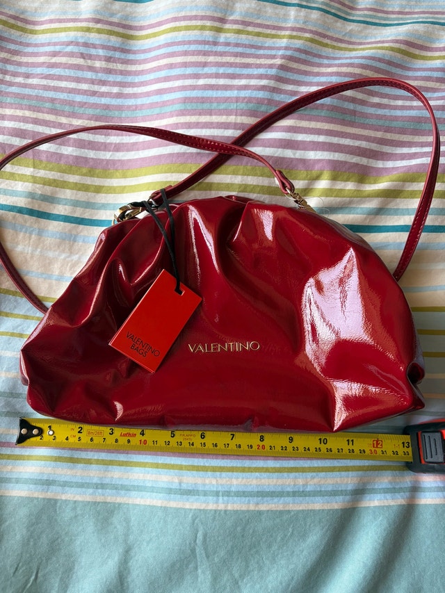 New VALENTINO purse still with tags as shown in pictures. Beautiful deep red. Purchased in Milan, Italy a few years ago. Bag is spacious with inner pockets. Measurements shown in last few photos. Pick up at square one mall.