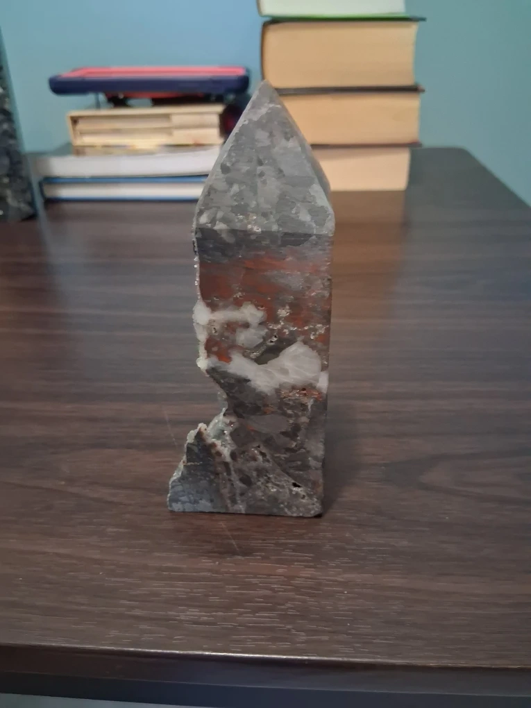 Grey Matrix: The solid grey base material is likely a combination of sphalerite and calcite.