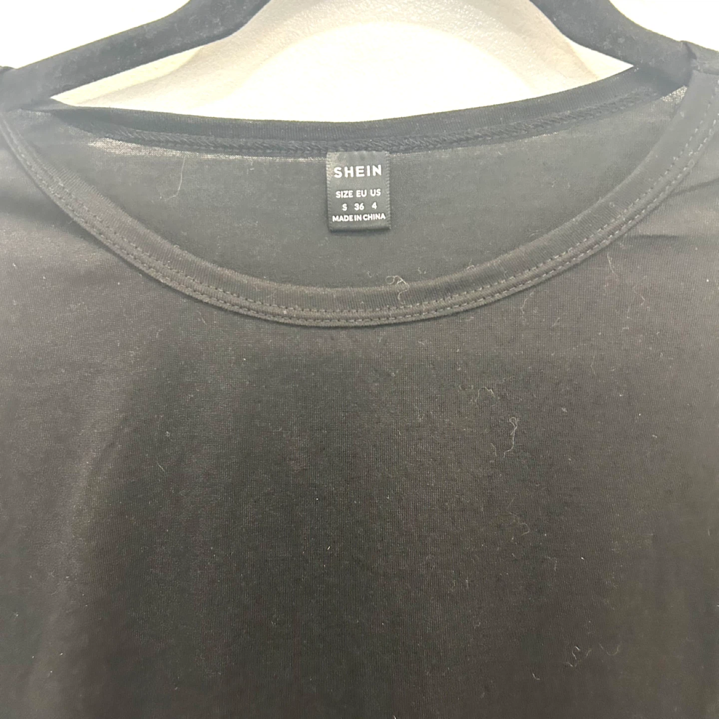 Selling a simple black T-shirt from Shein! It's a size small and in great condition. Perfect for everyday wear or layering
